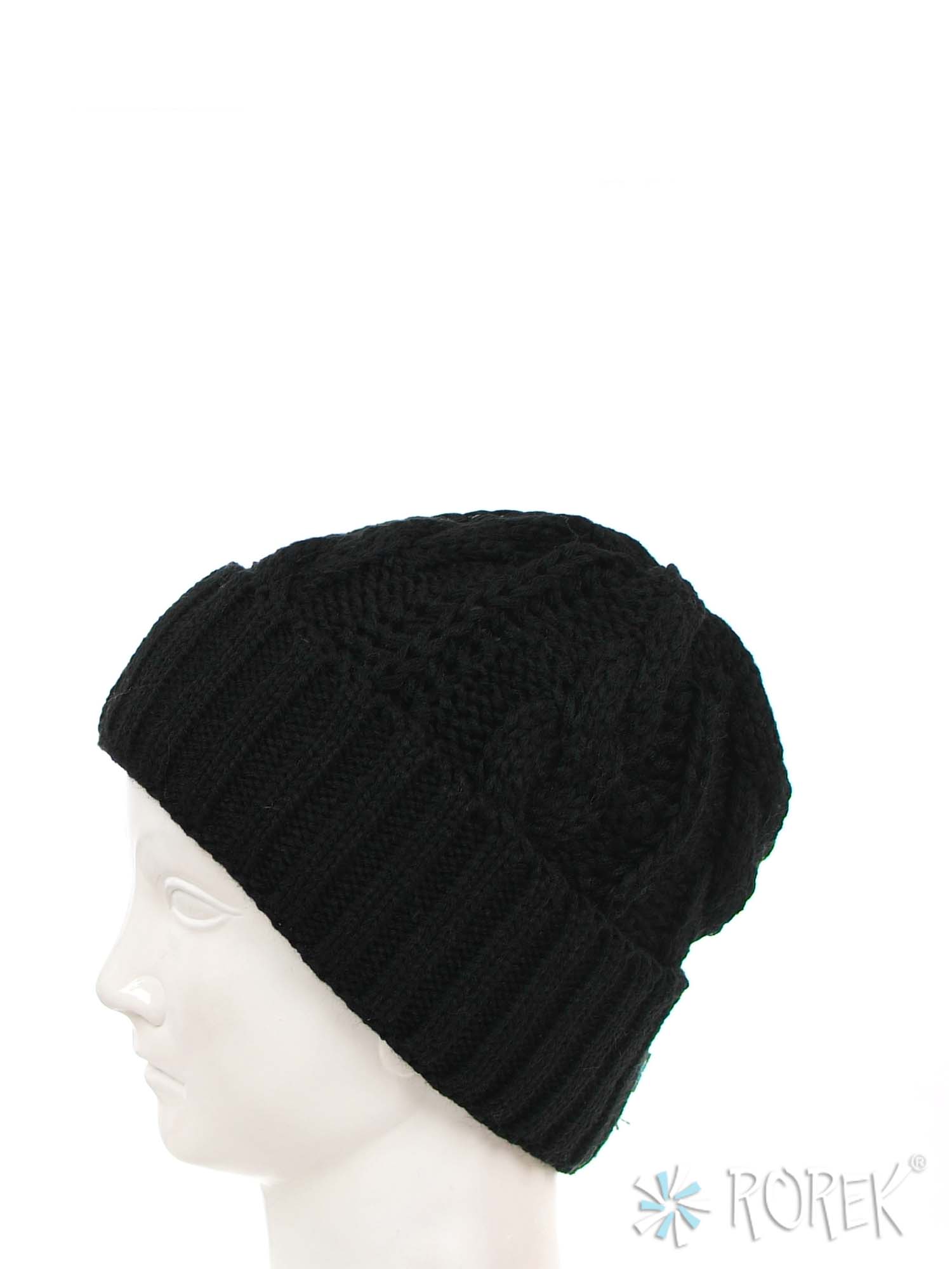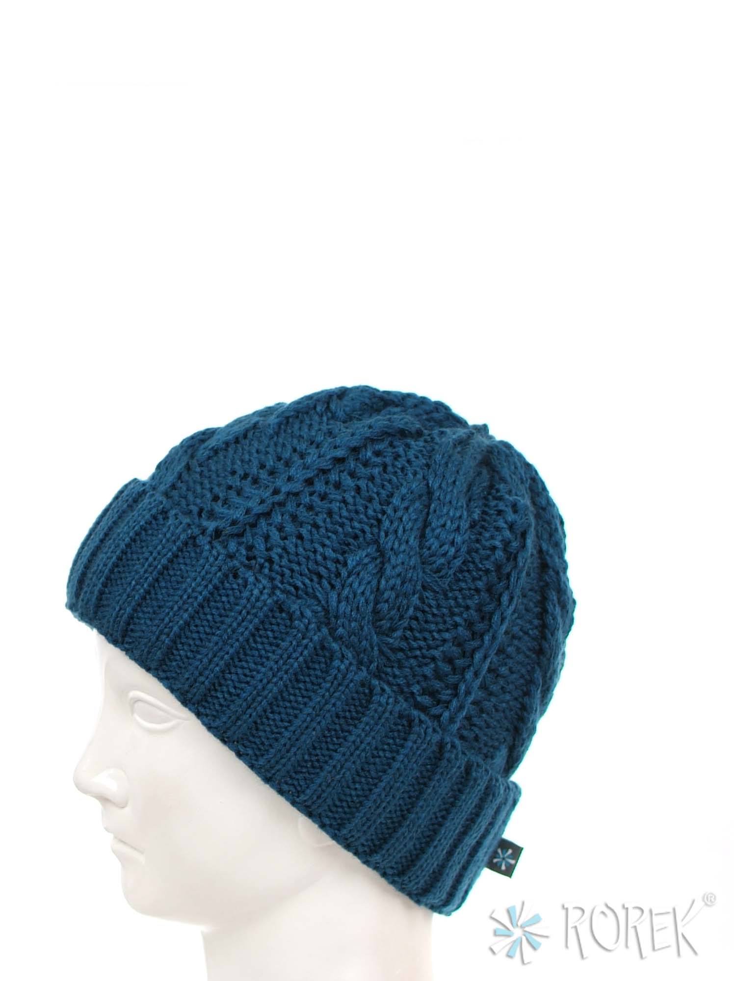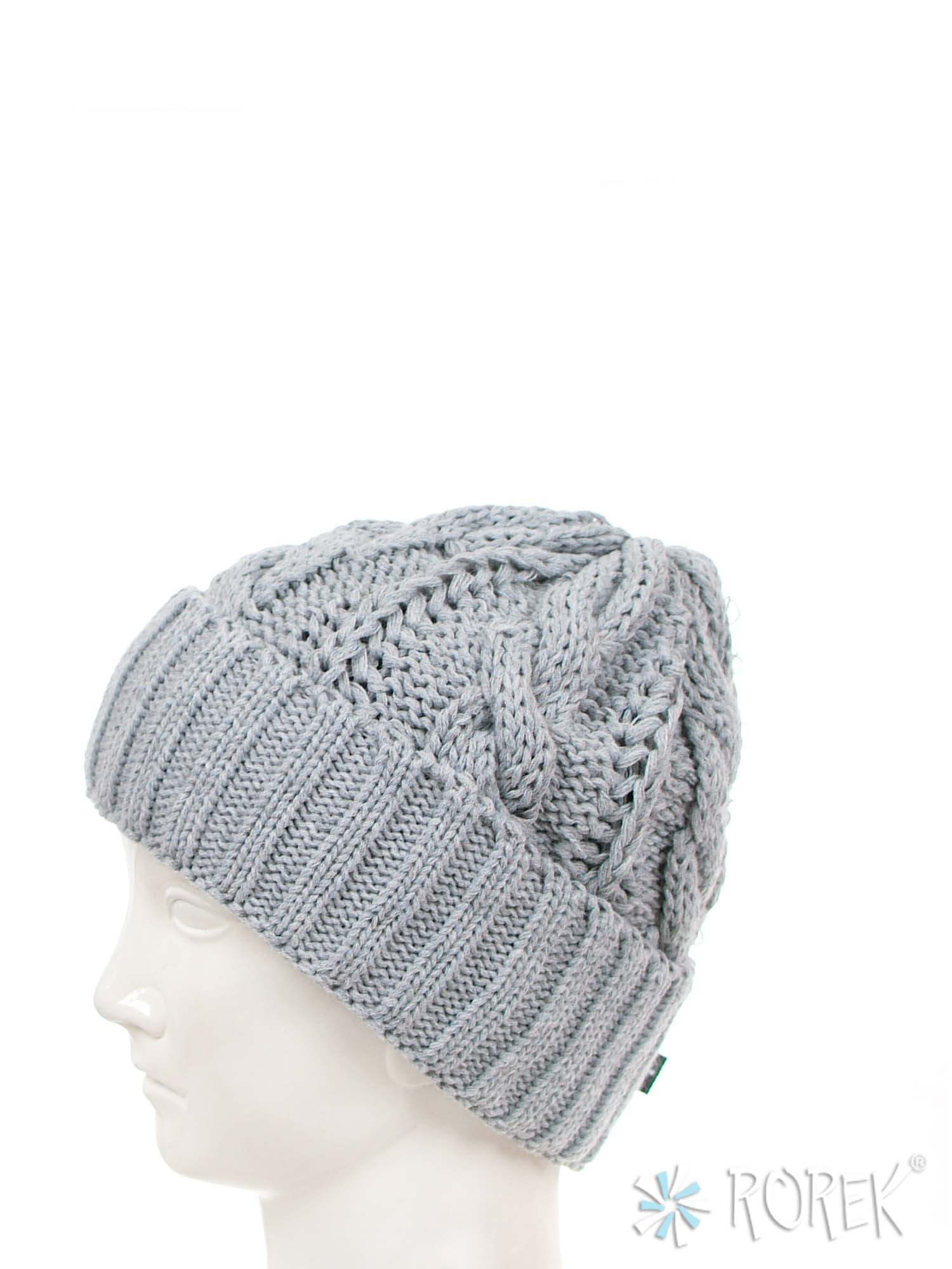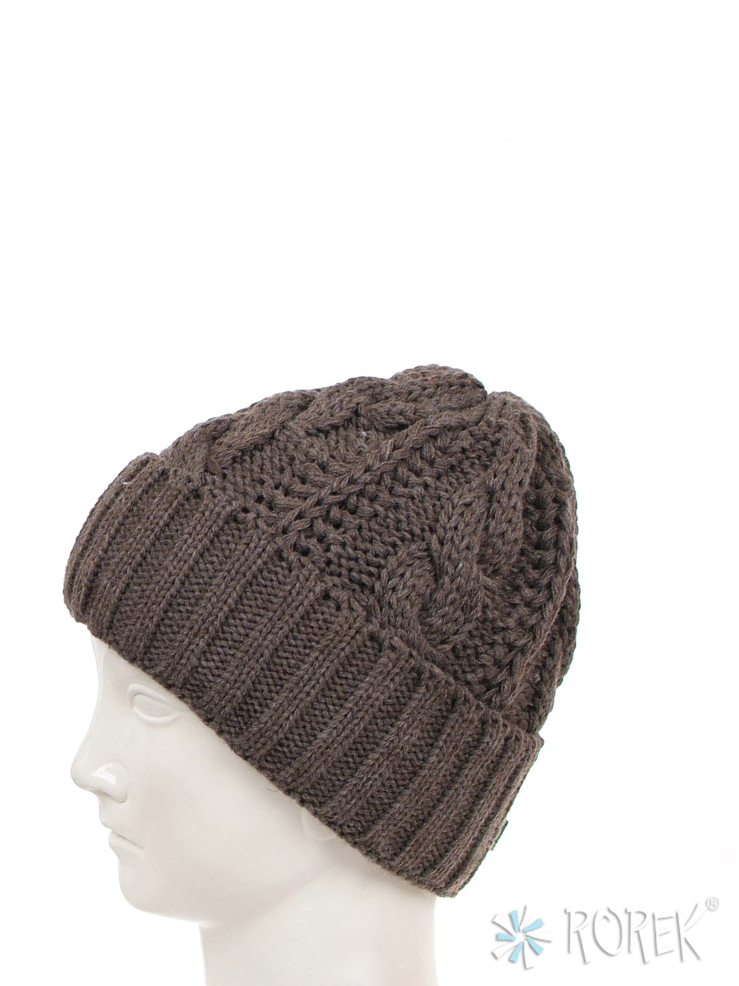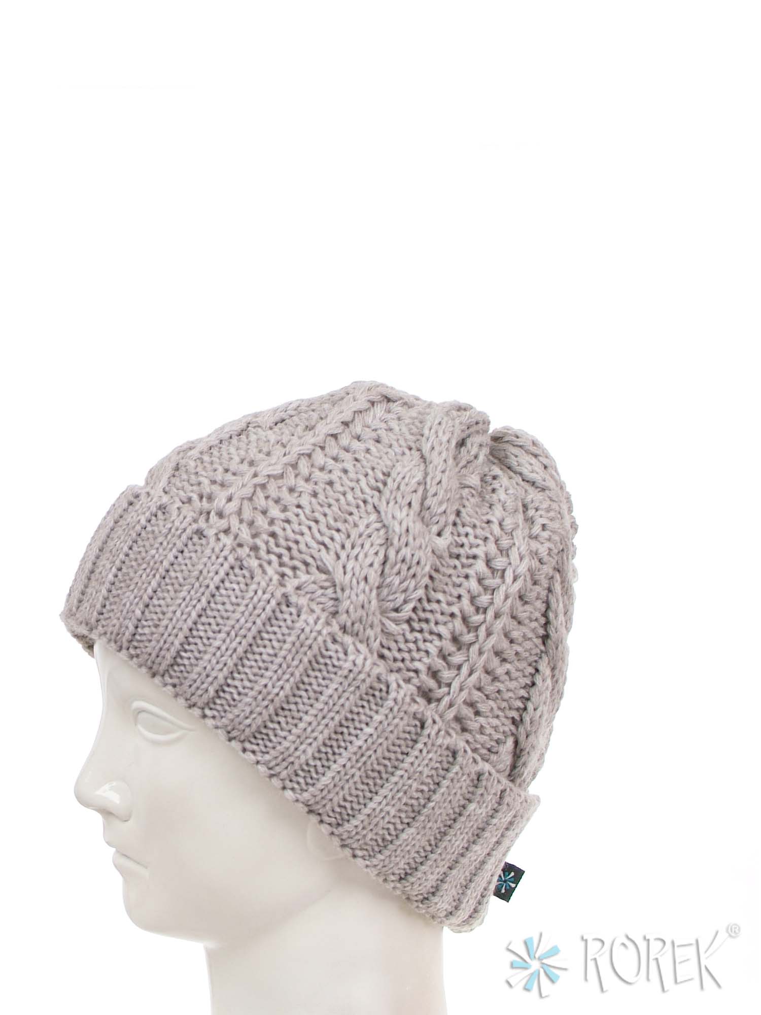Czapka zimowa damska, o splocie grubego warkocza z wywinięciem, dodatkowo podszyta termo polarem (bardzo ciepła).