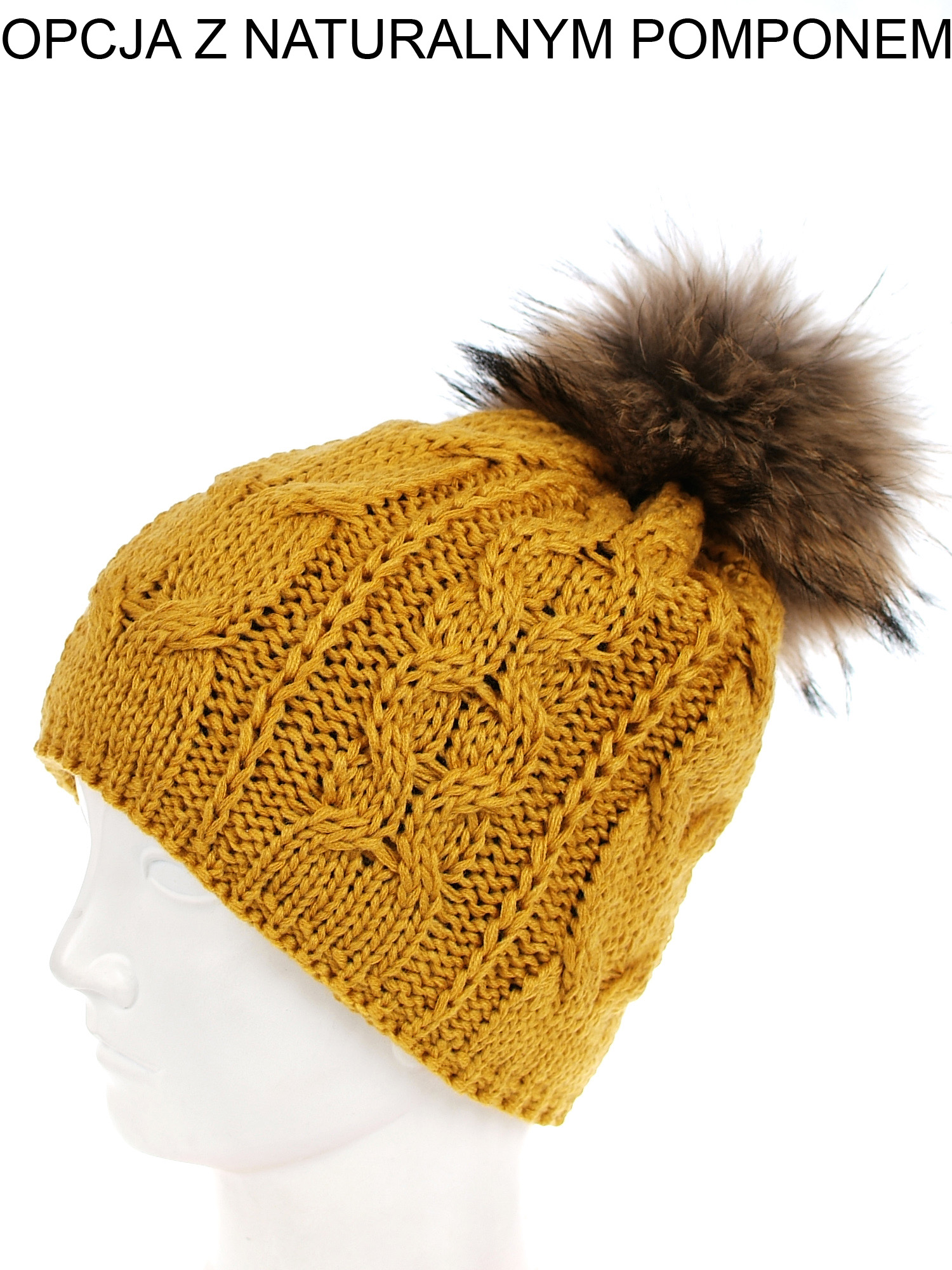 Czapka zimowa damska - OPASKOWA z pomponem