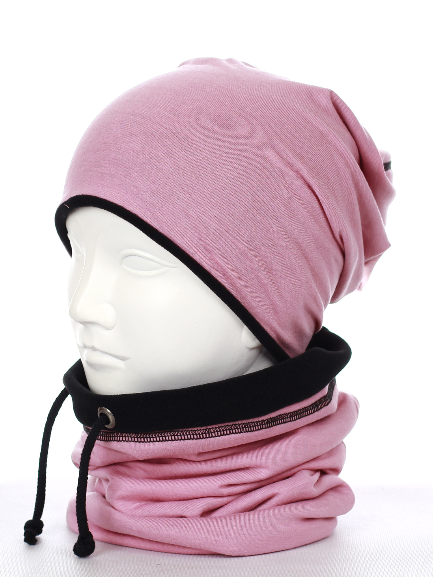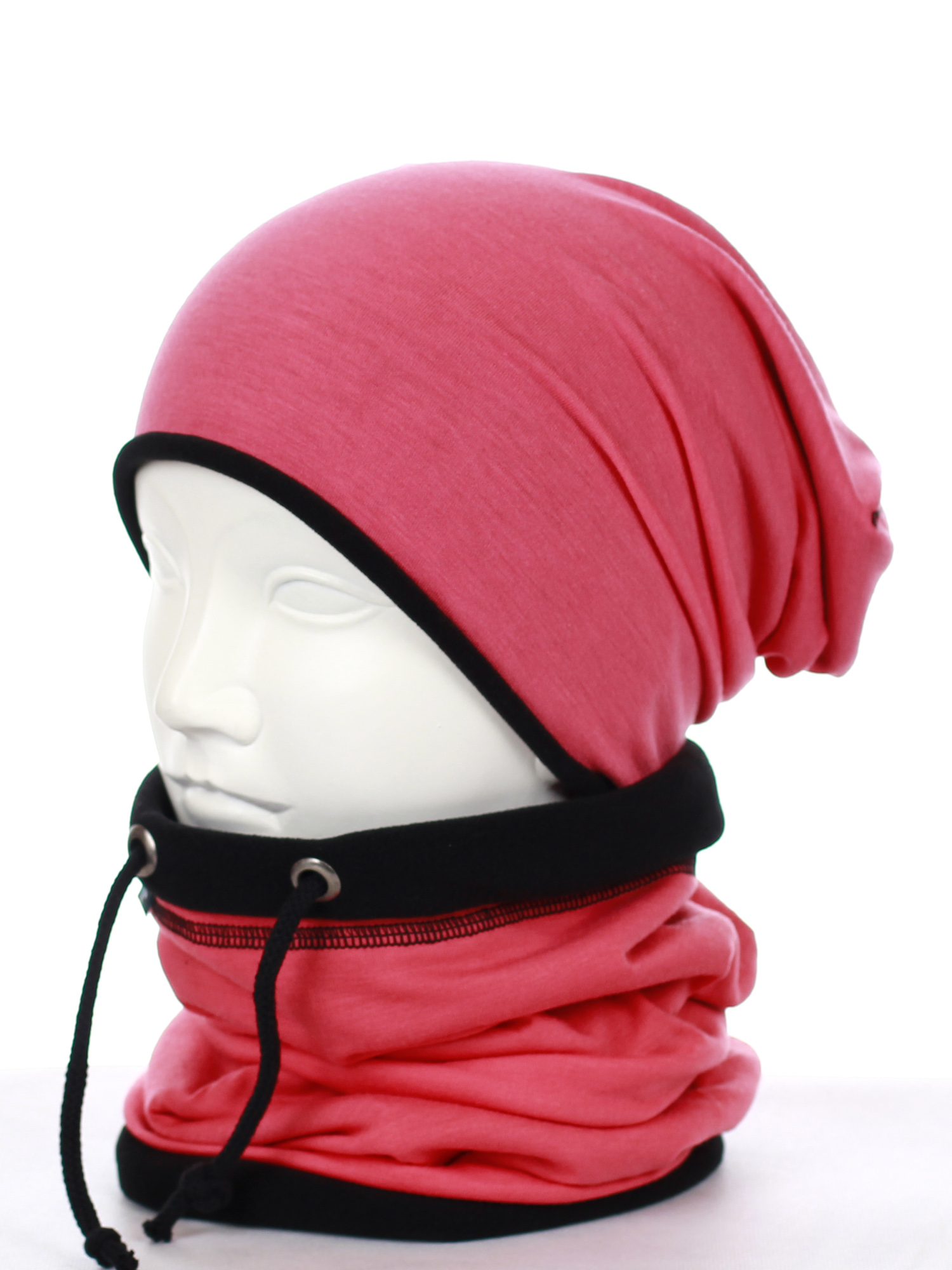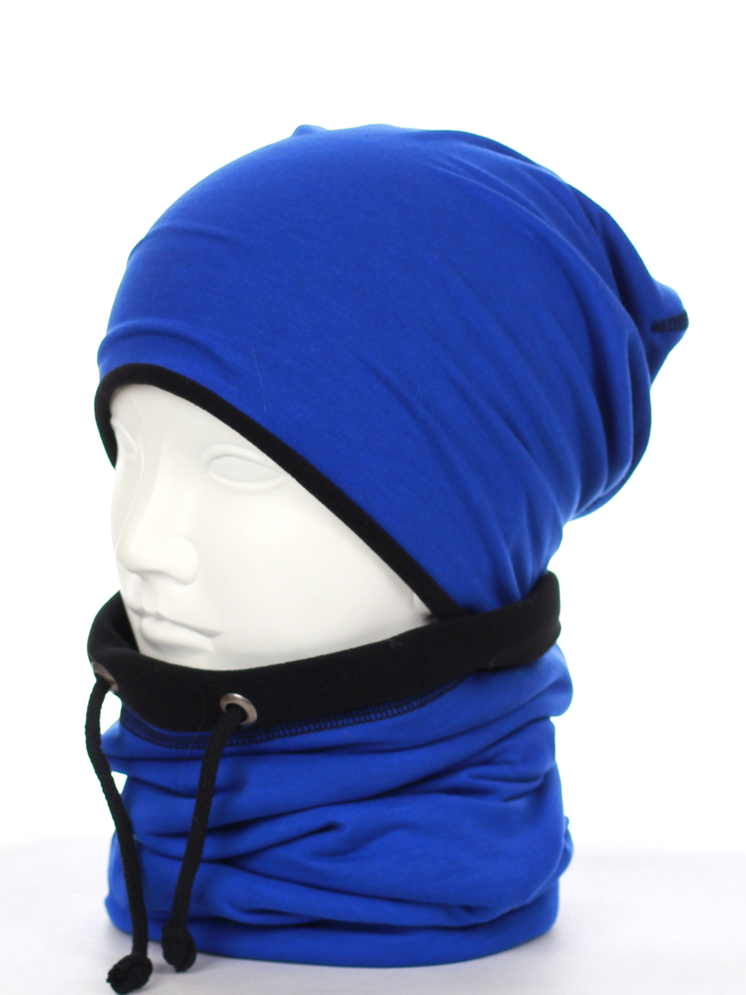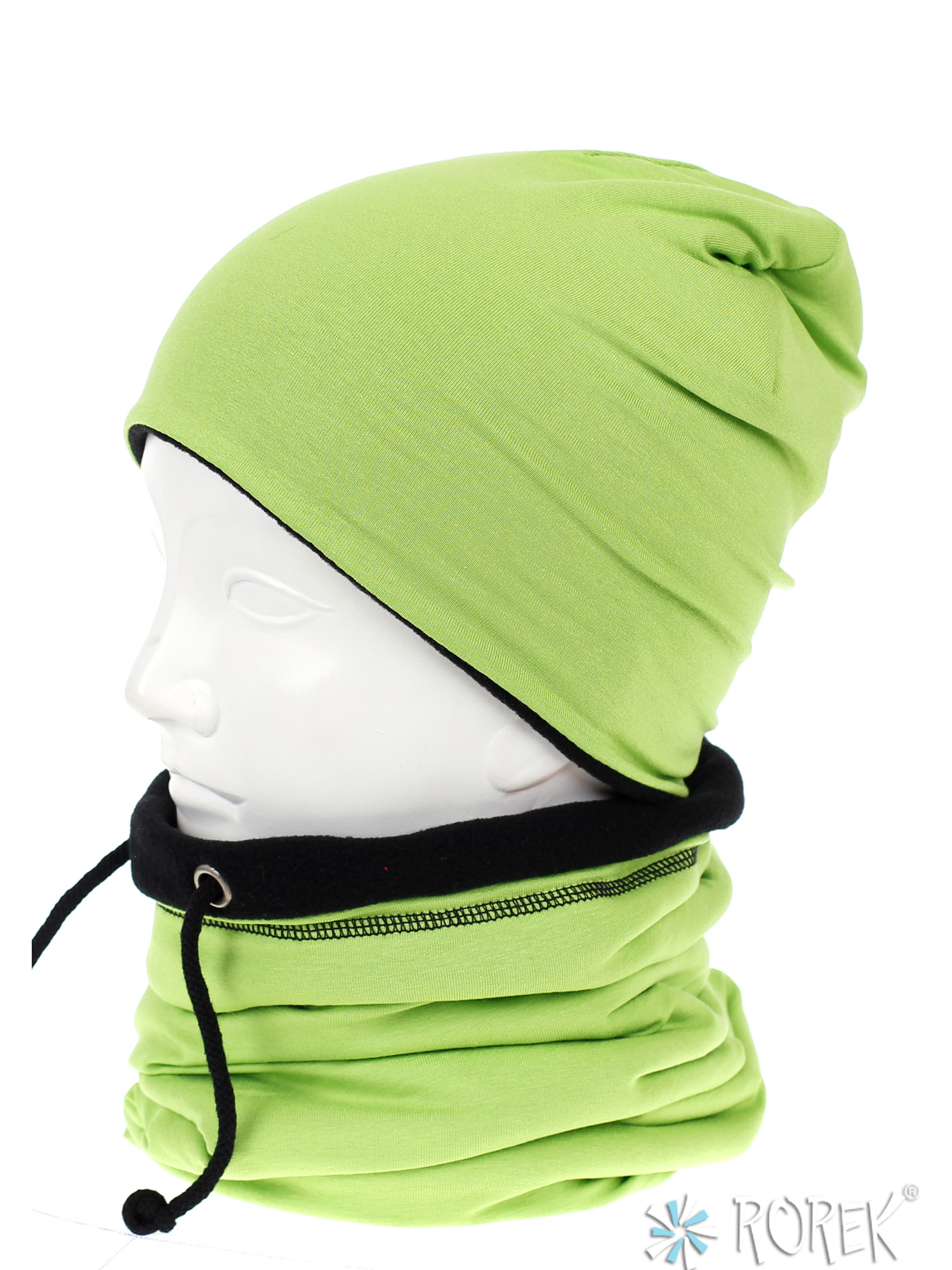 Komin - tuba, zakładany przez głowę, posiada sznureczki do regulacji, również podszyty ciepłym polarem.