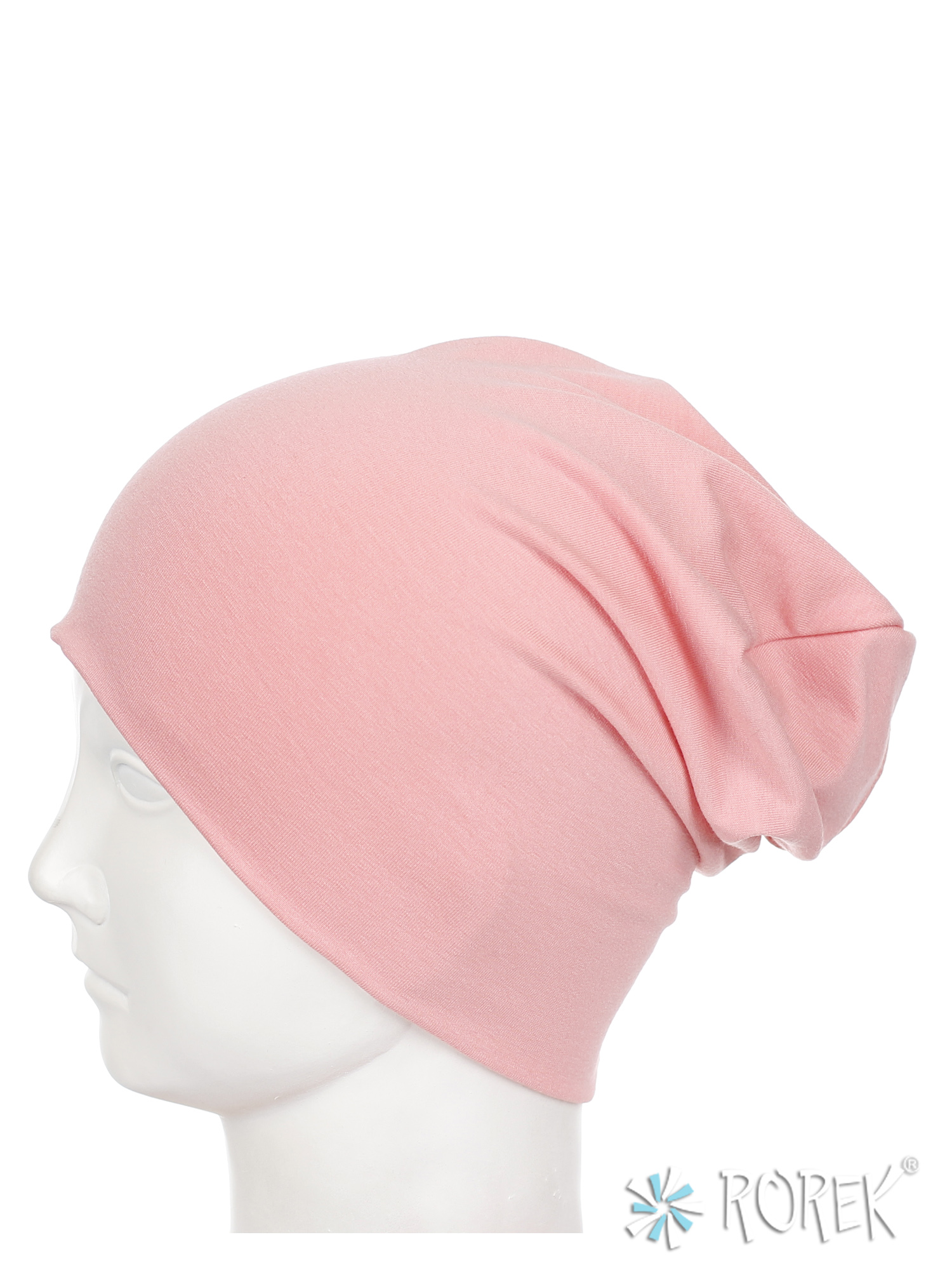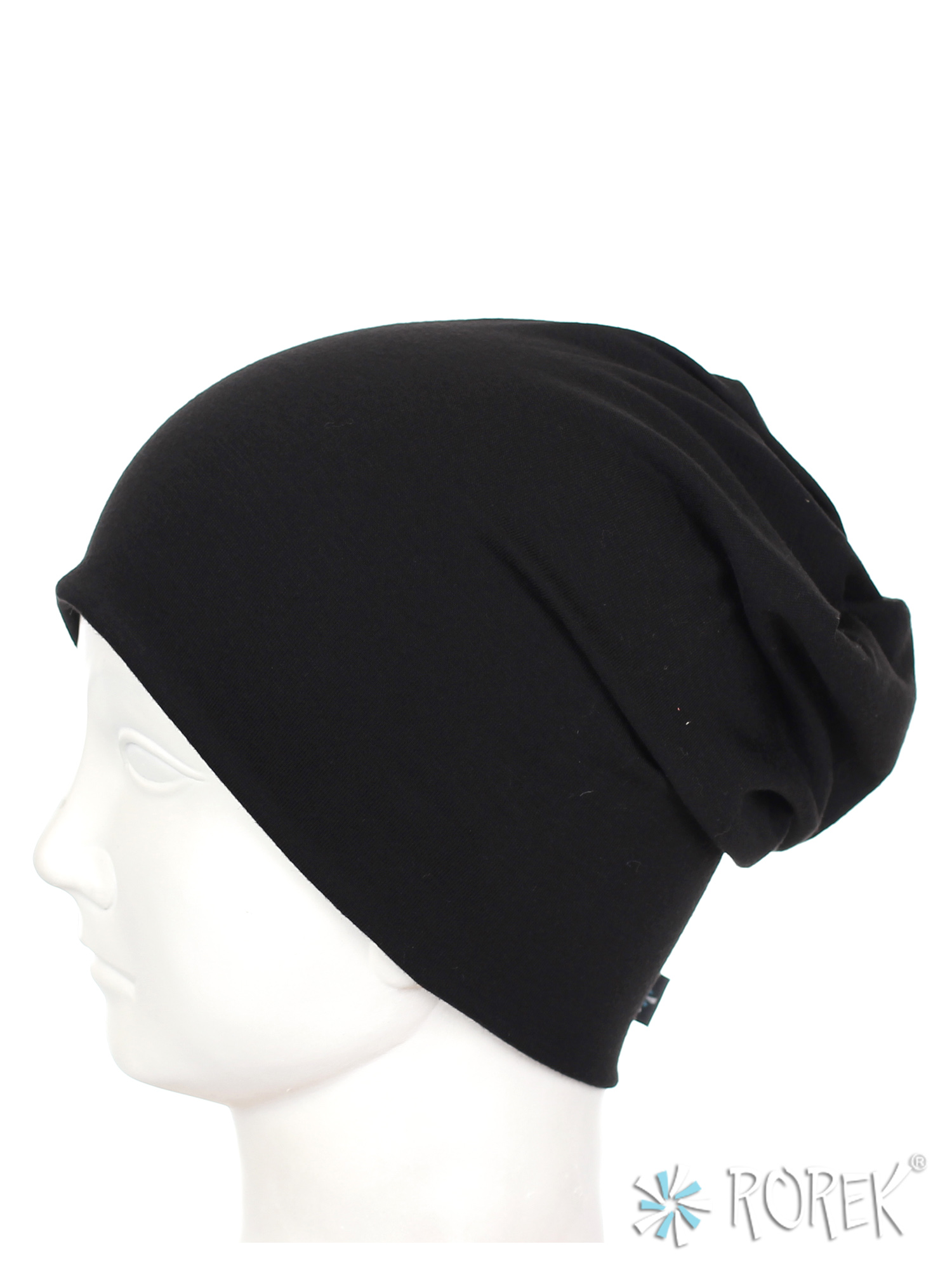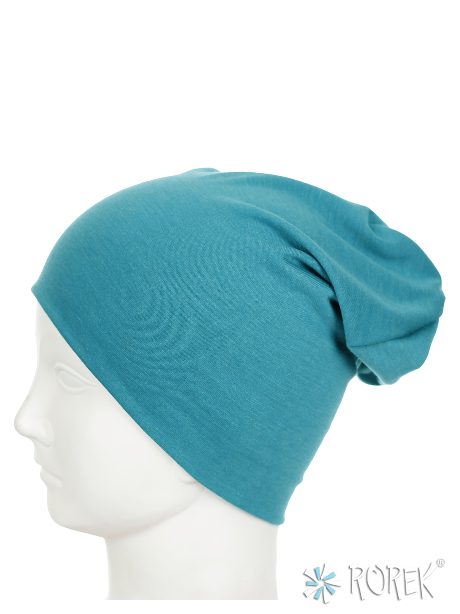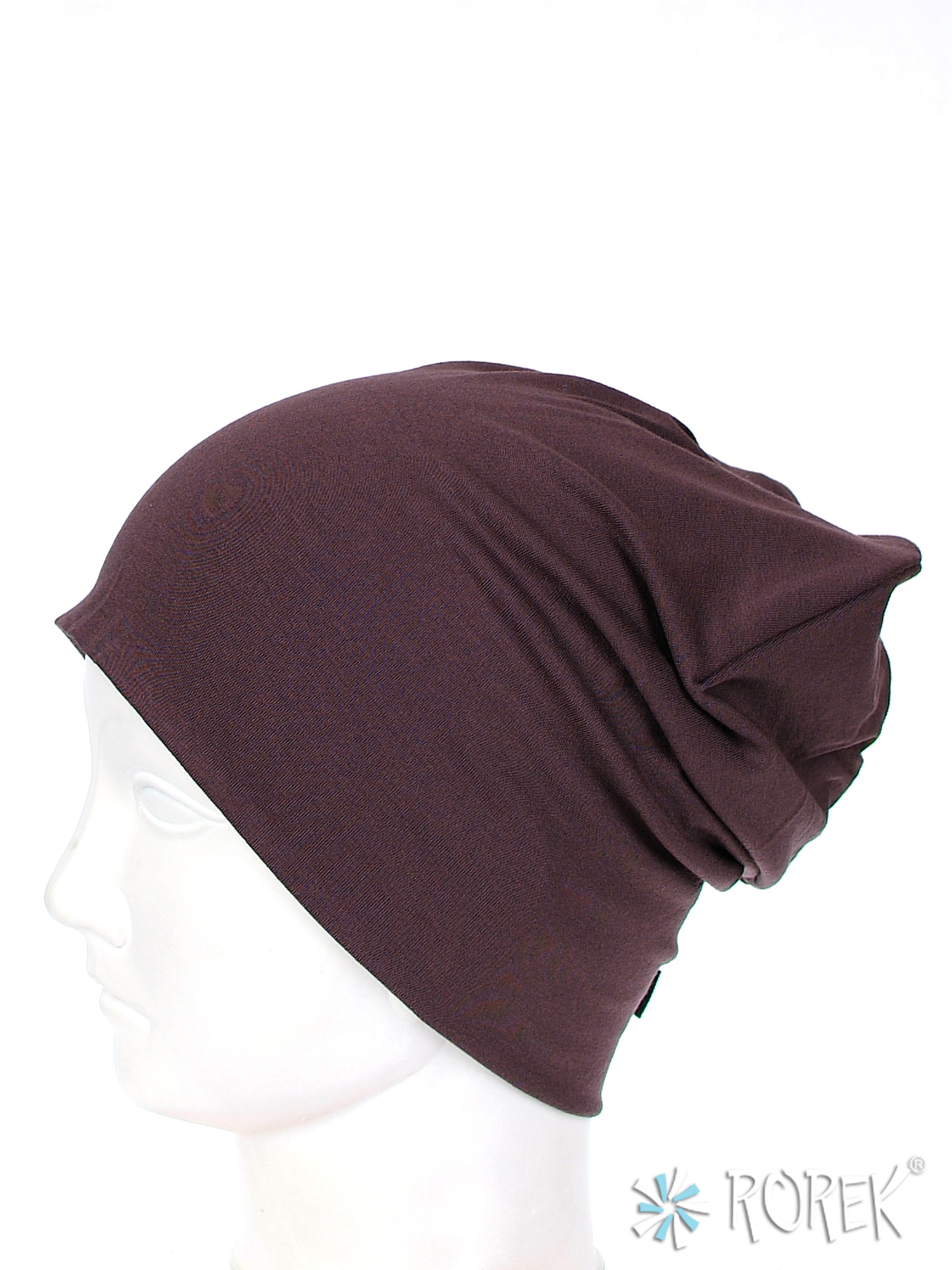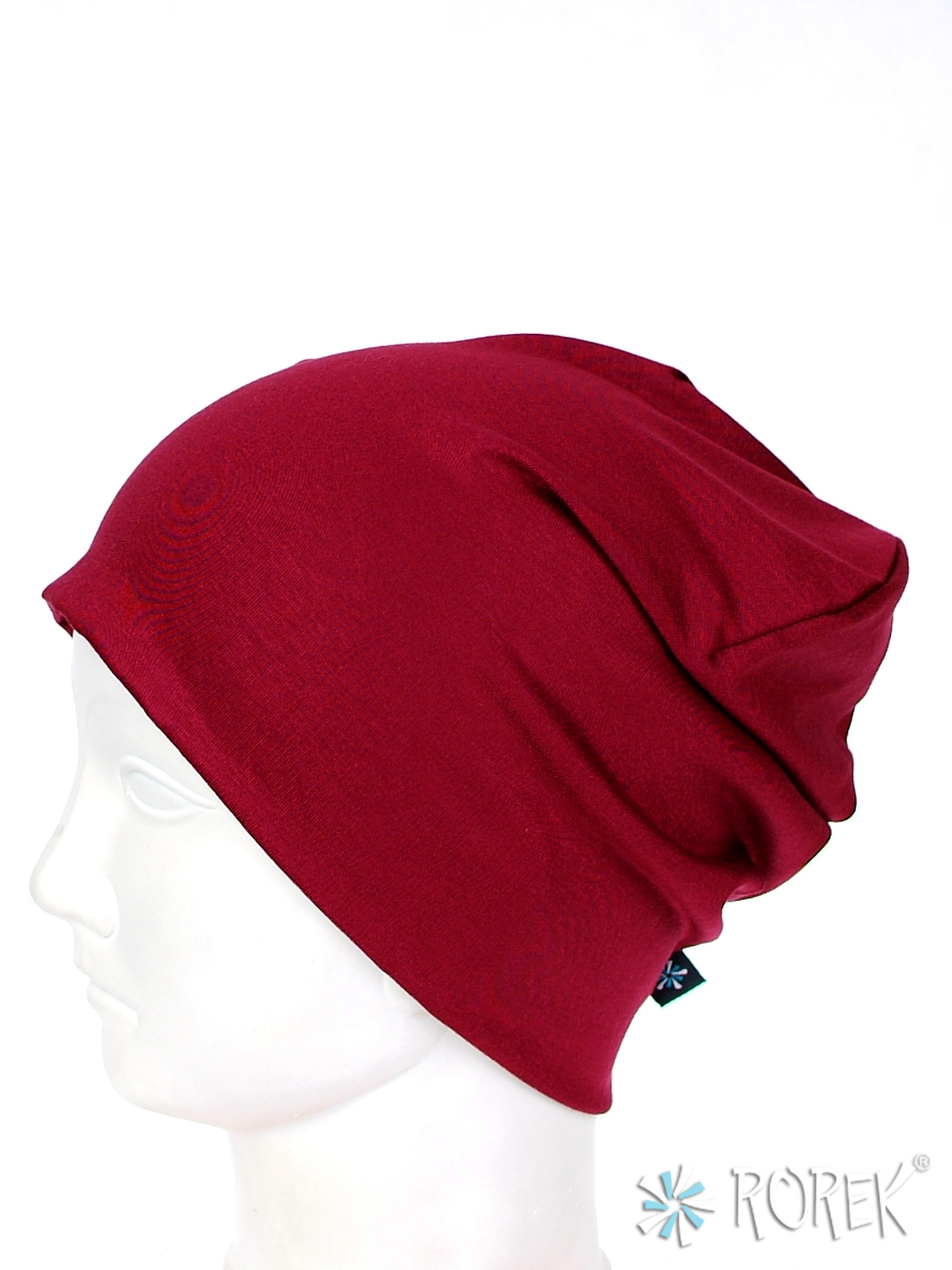 Czapka damska beanie - krasnal wykonana z podwójnej warstwy lekkiego, lejącego i bardzo przyjemnego w dotyku materiału bawełnianego, który nie uczula i nie podrażnia skóry.