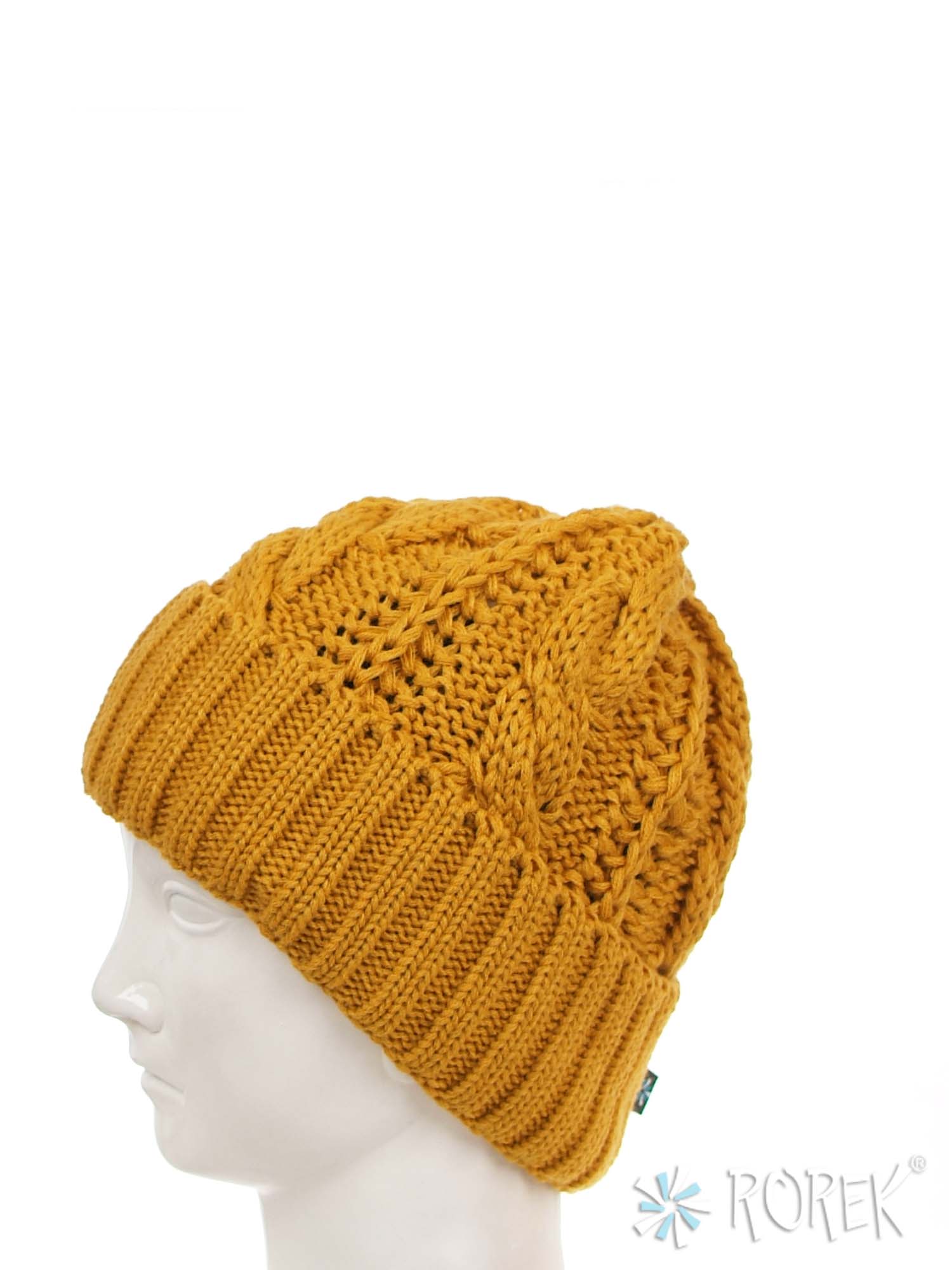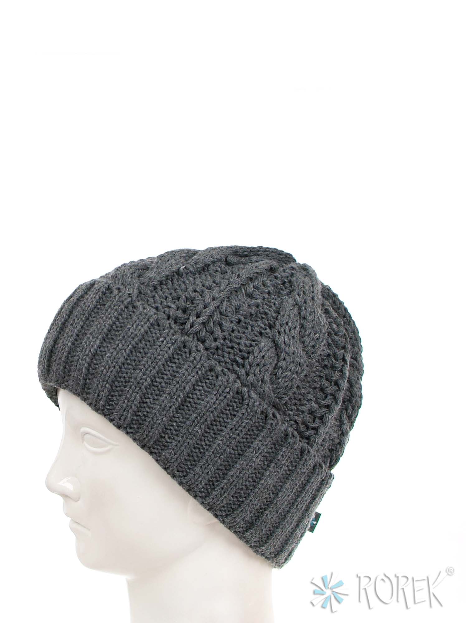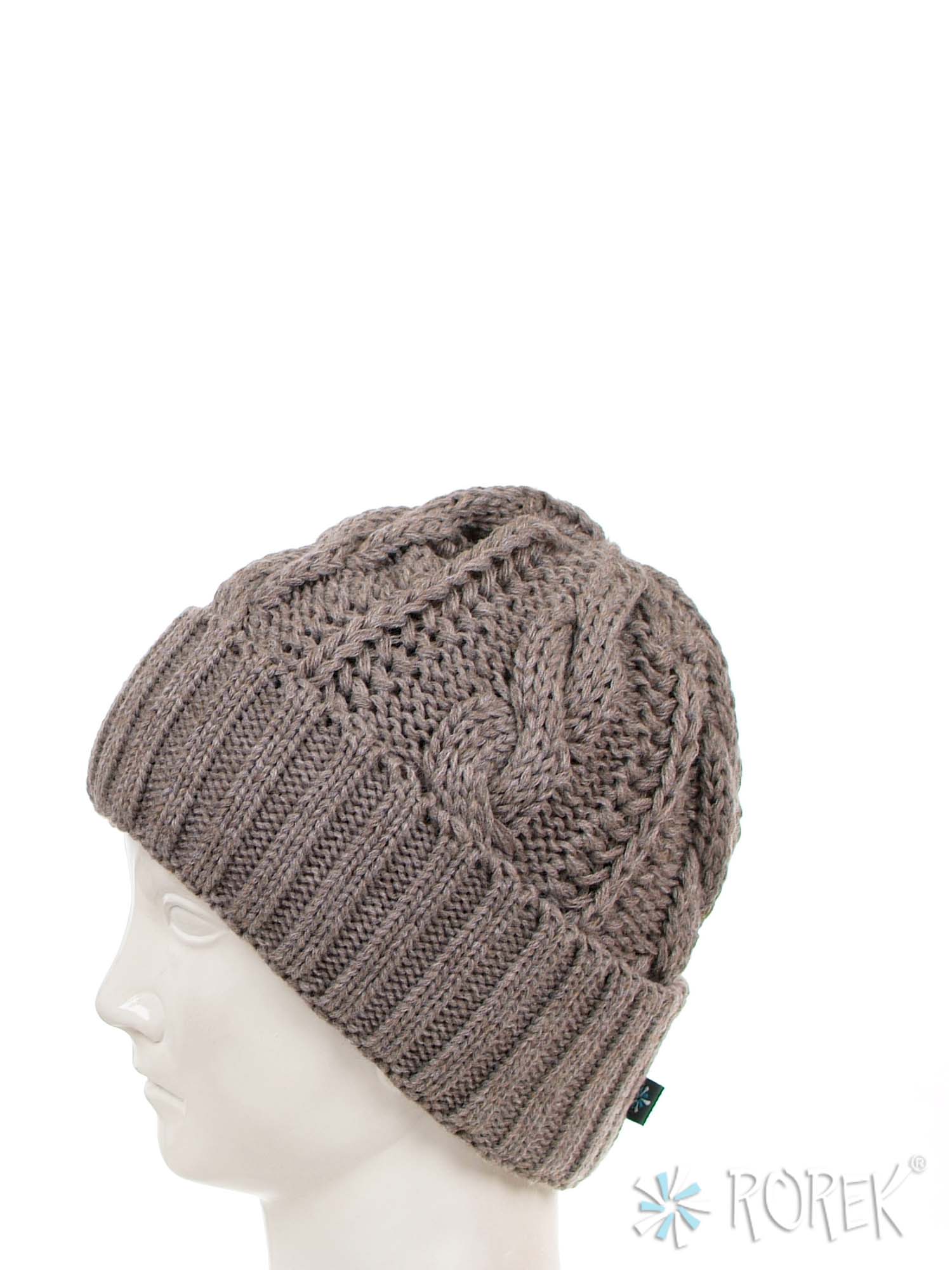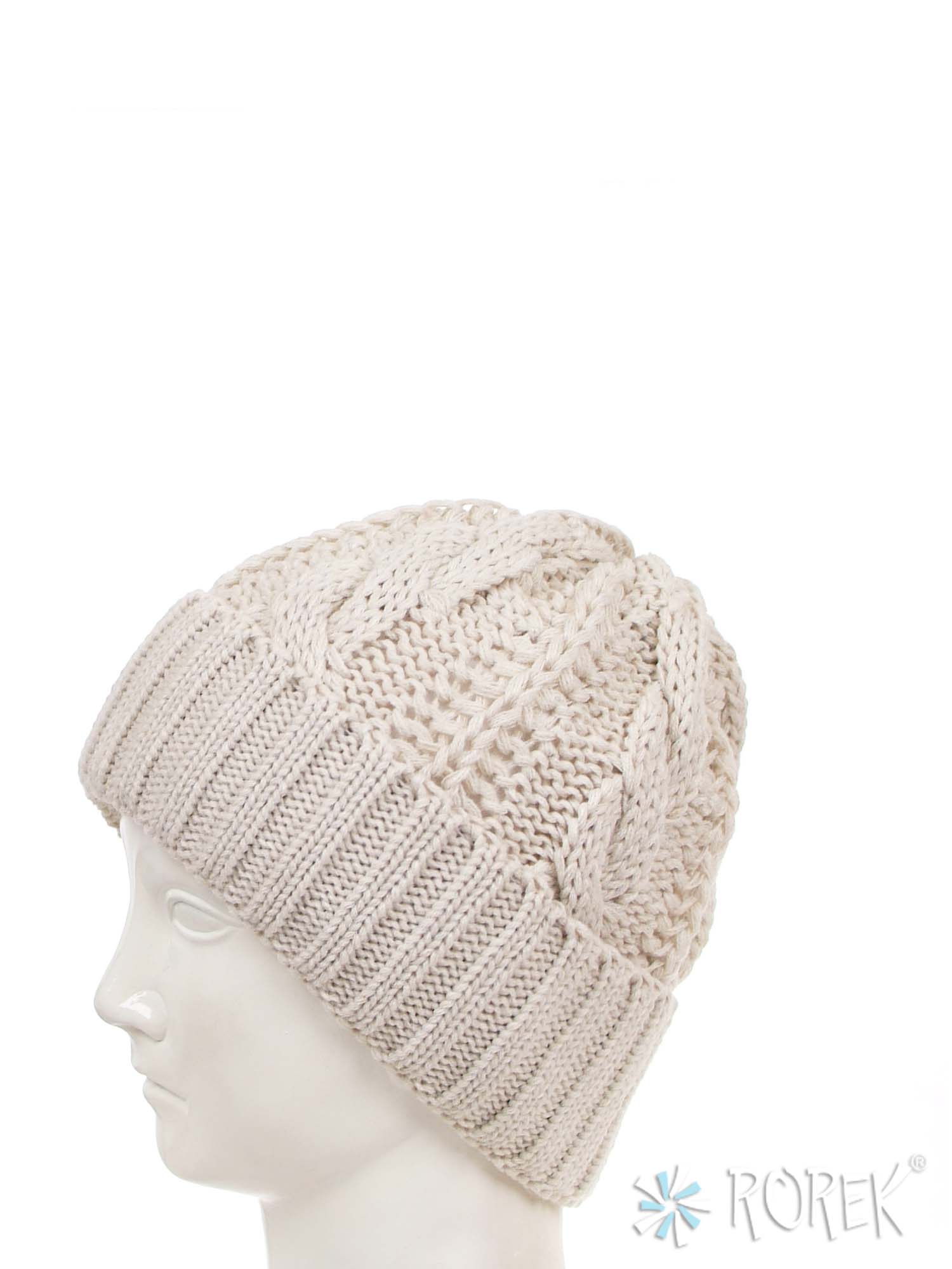 Czapka zimowa damska, o splocie grubego warkocza z wywinięciem, dodatkowo podszyta termo polarem (bardzo ciepła).