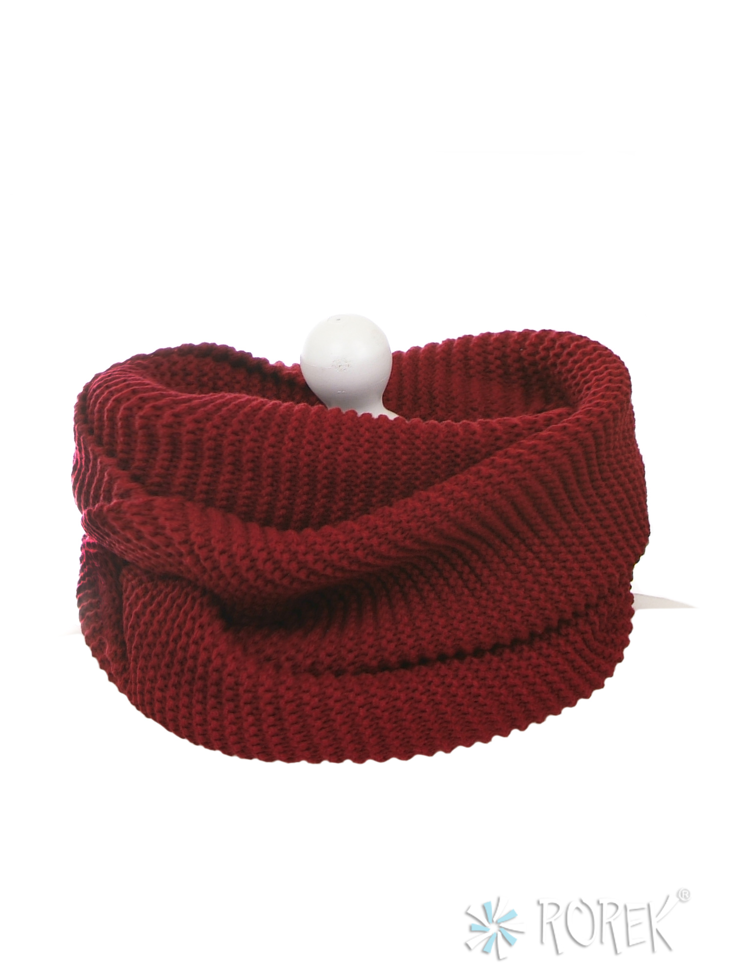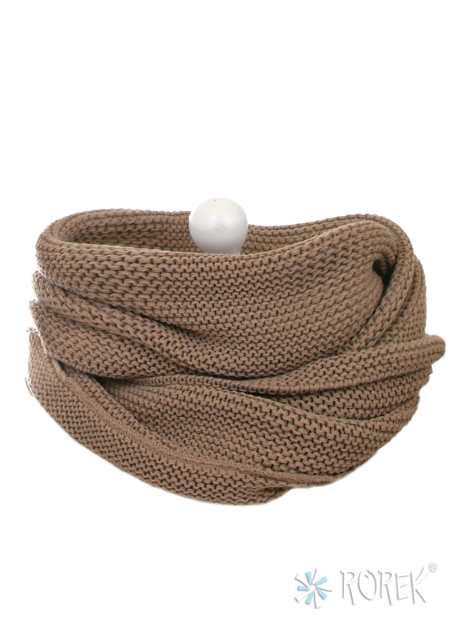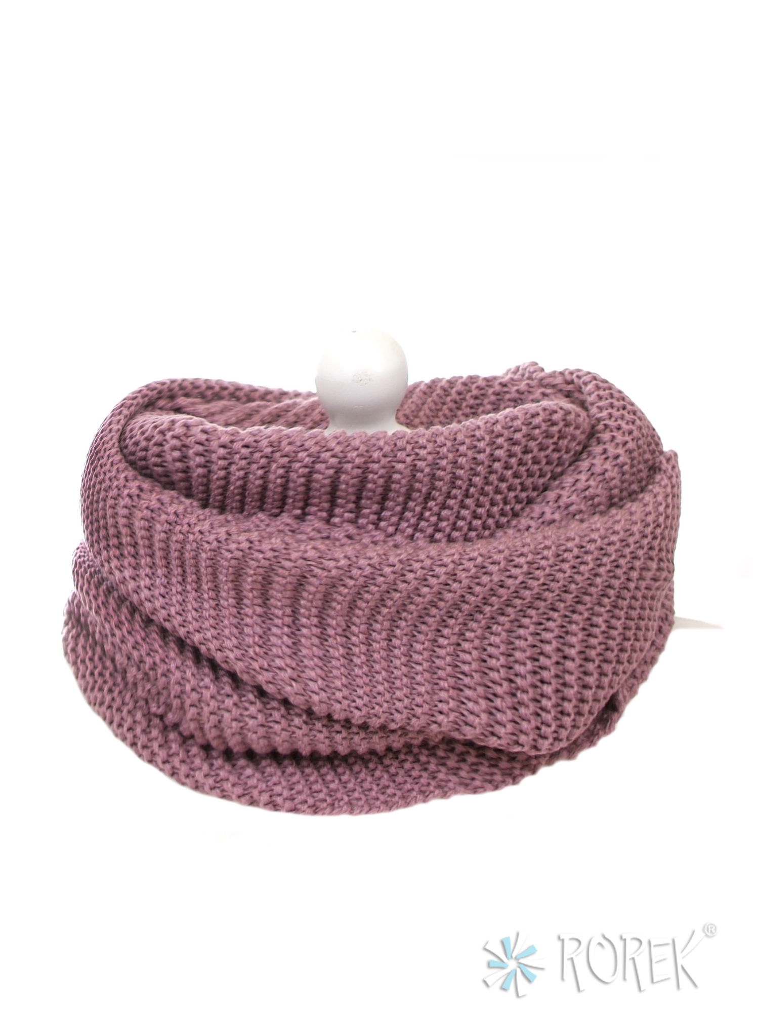 Komin damski " Grysik" o elastycznym splocie, zakładany w " ósemkę ", tworząc dwie warstwy wokół szyi.