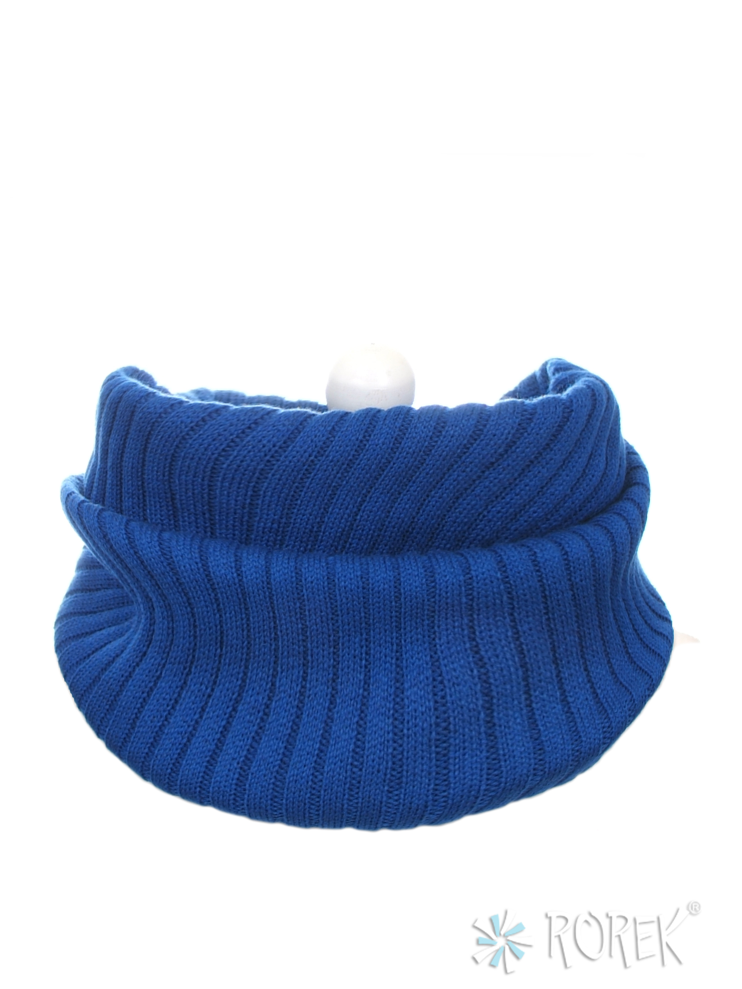Komin damsko - męski o gładkim, drobnym splocie, zakładany w " ósemkę ".
