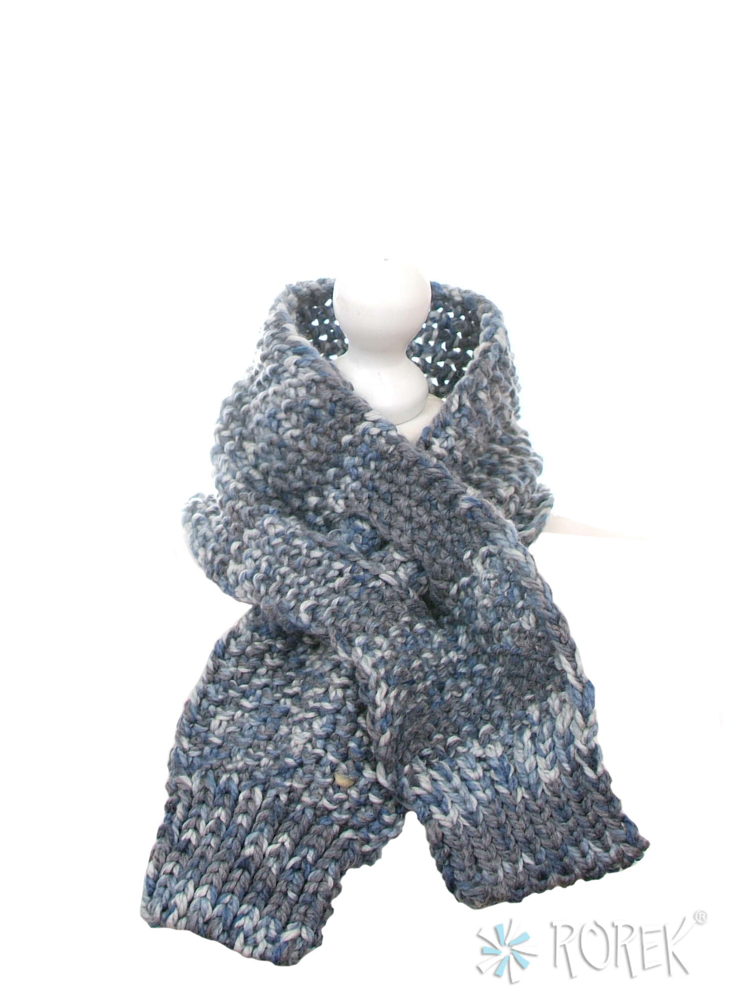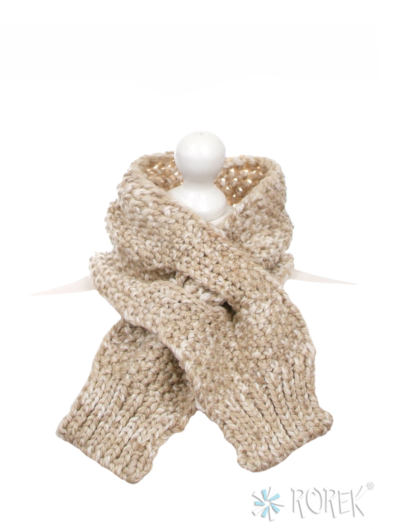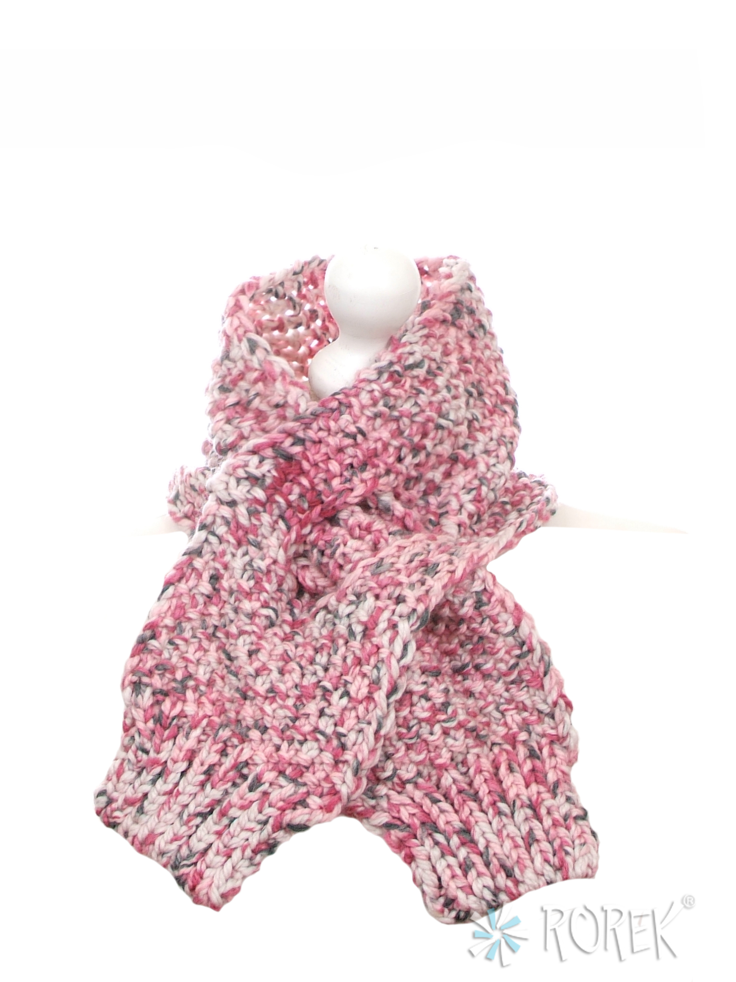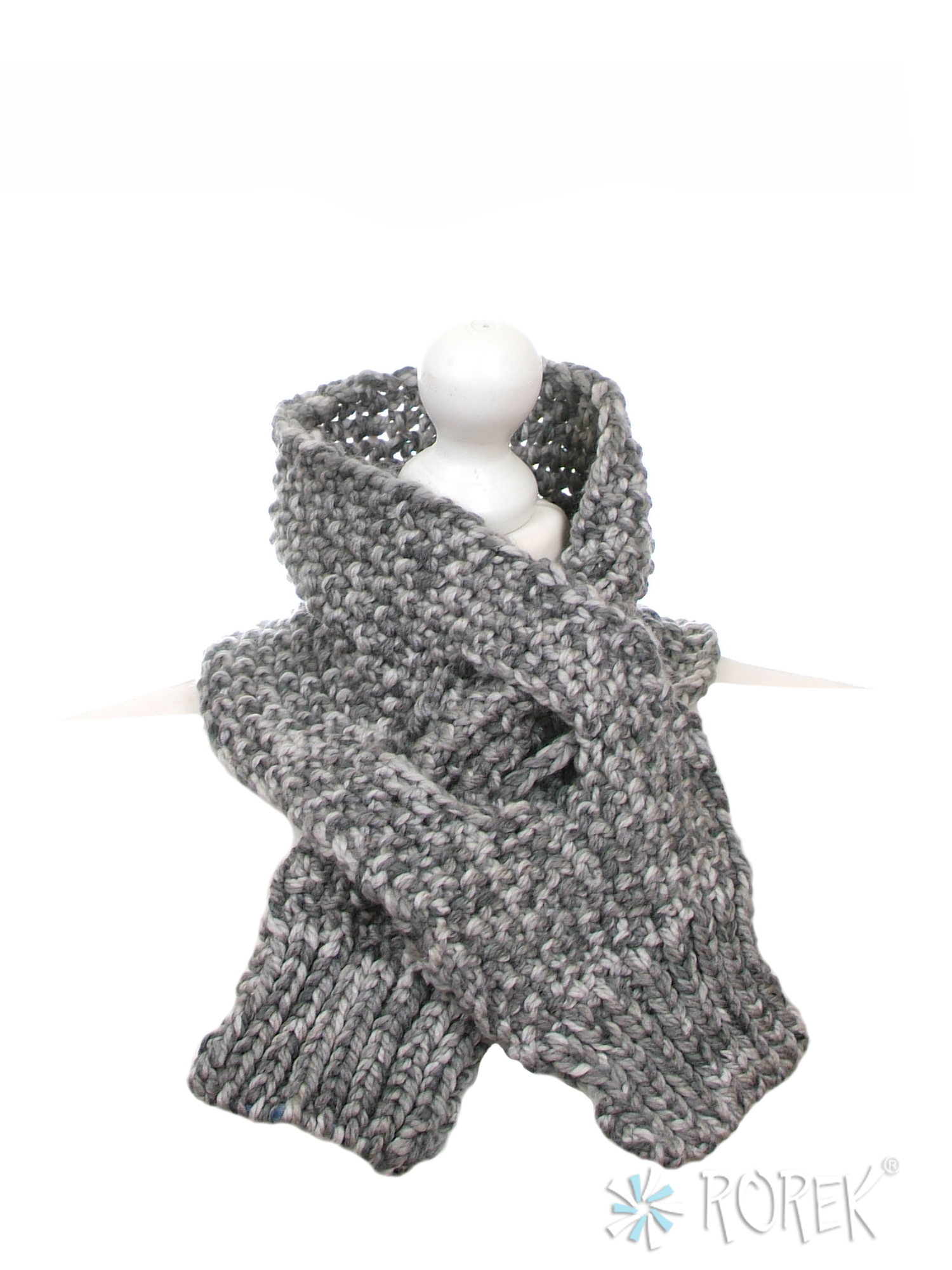 Szalik wiązany za pomocą szlufki ( jak na zdjęciu), również grubo pleciony, idealnie wygląda w komplecie z czapką.