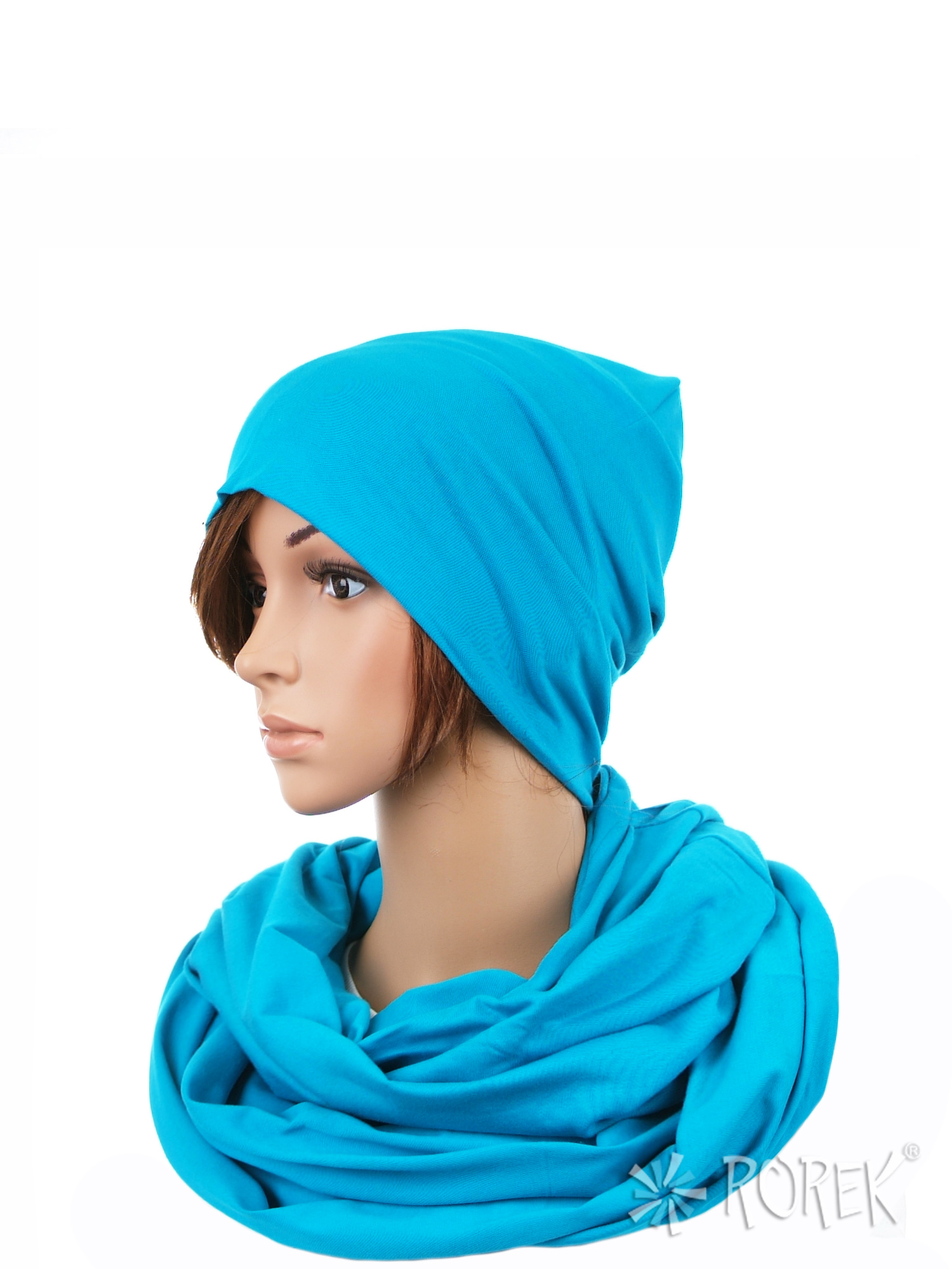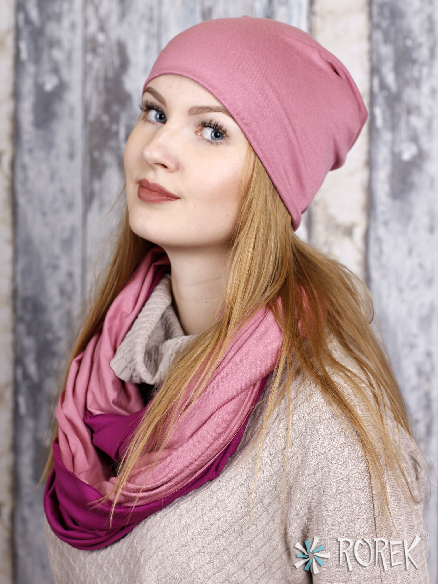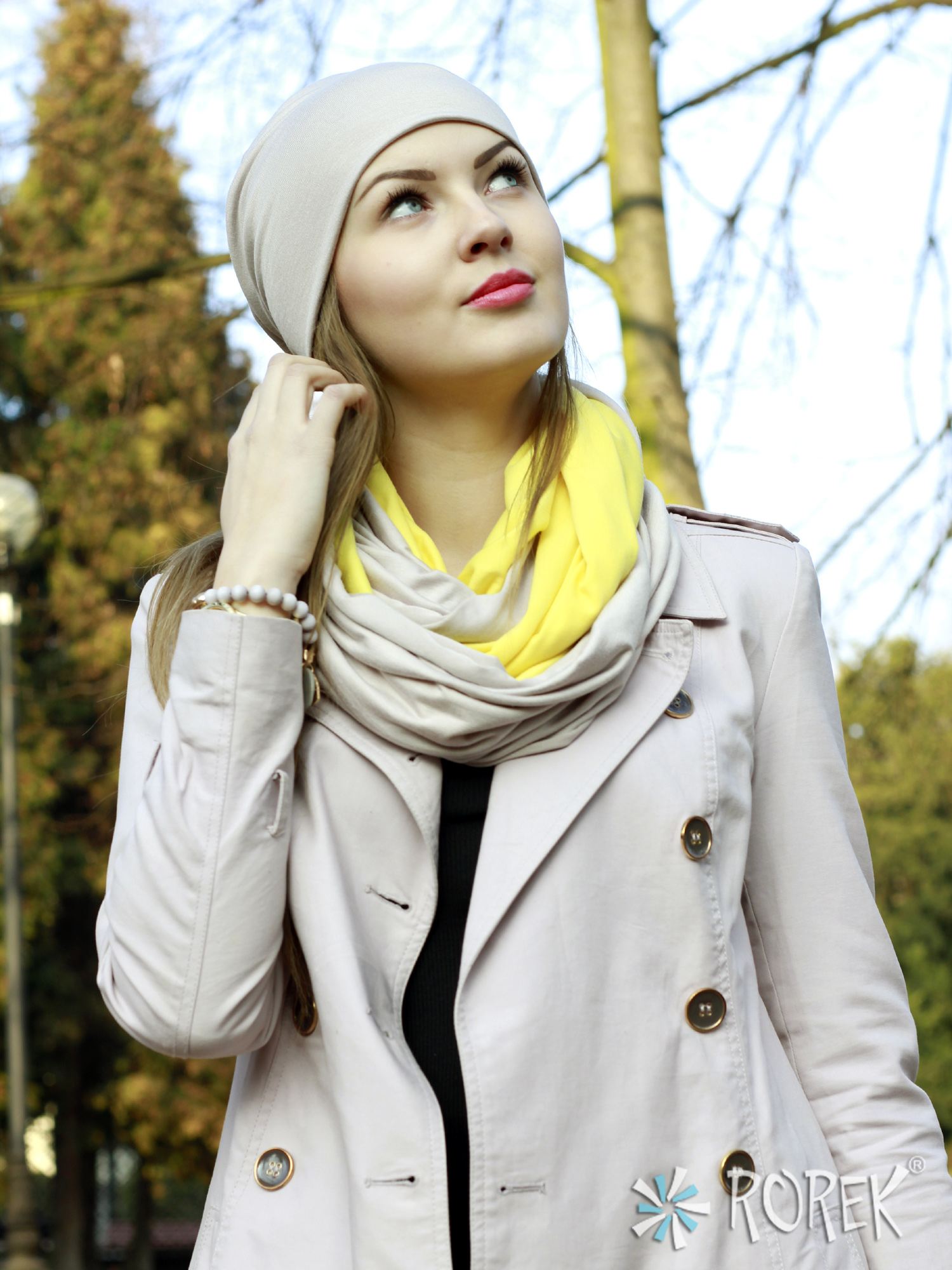2) Szal - komin damski zakładany w "ósemkę", tworząc dwie lejące warstwy wokół szyi. Wykonany z przyjemnego w dotyku materiału, krawędzie naturalnie się wywijają (rolują). Możesz tworzyć własne kompozycje kolorystyczne, łącząc kilka kominów na raz.
