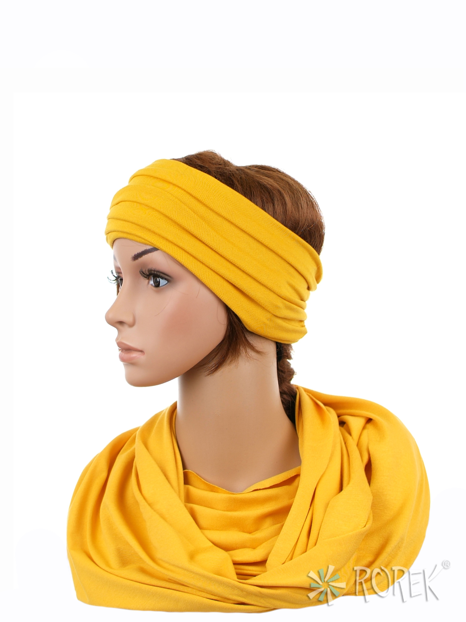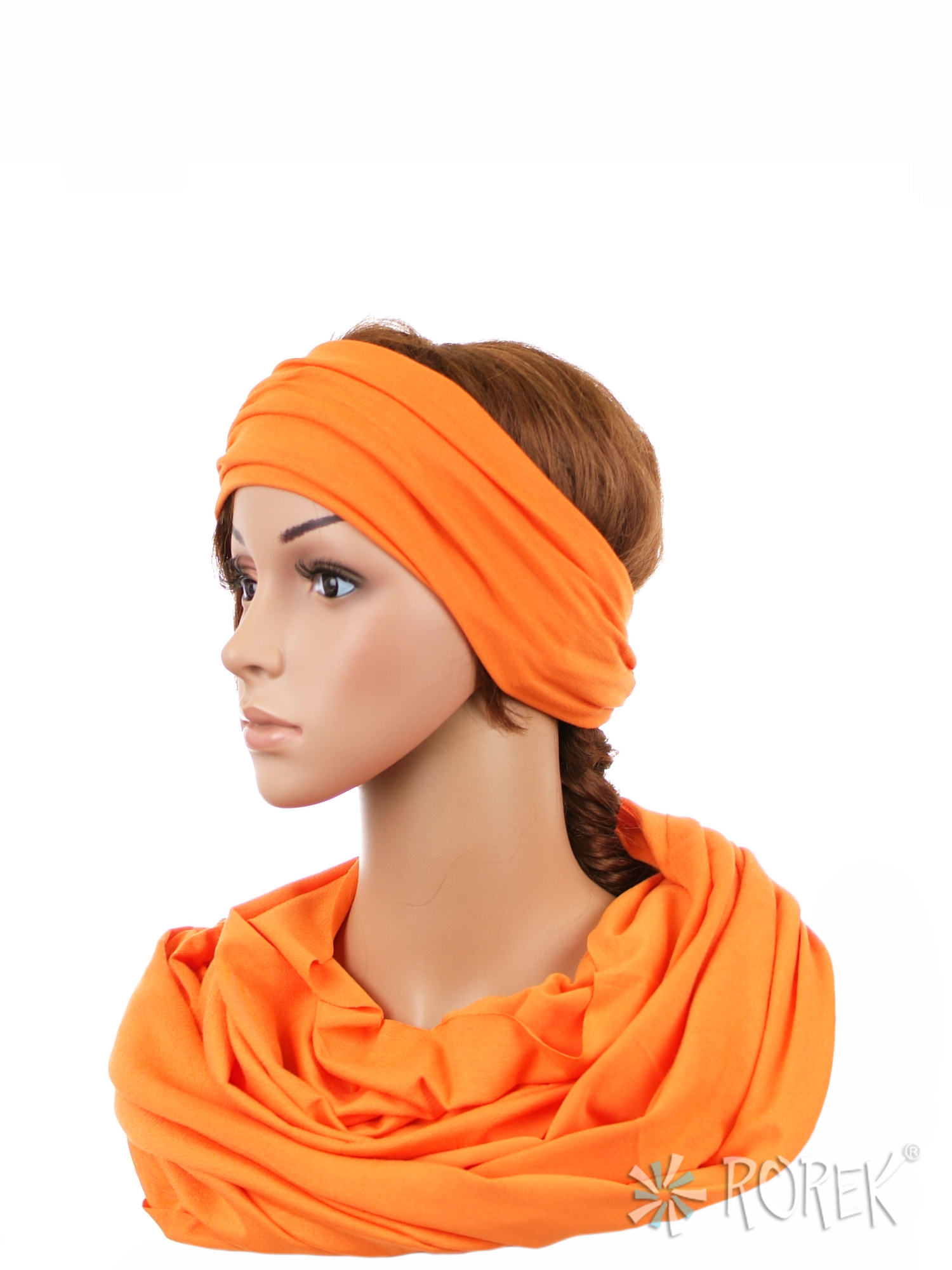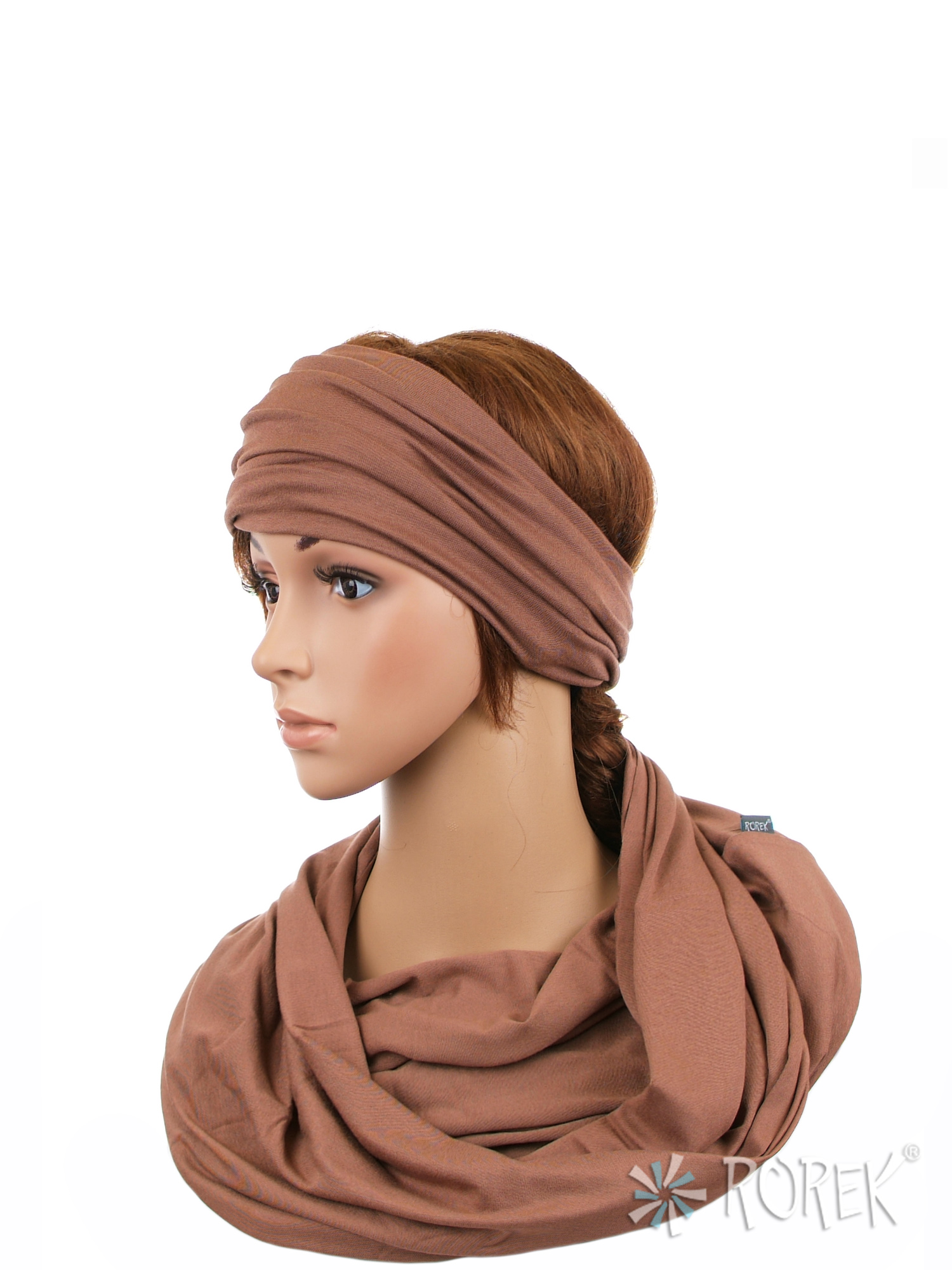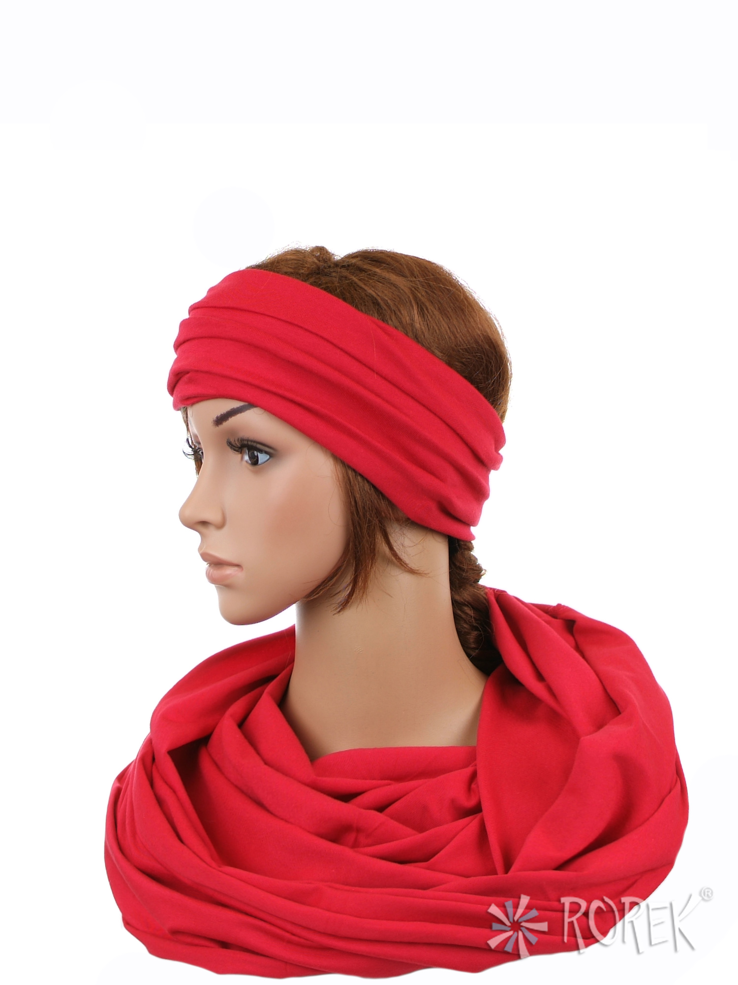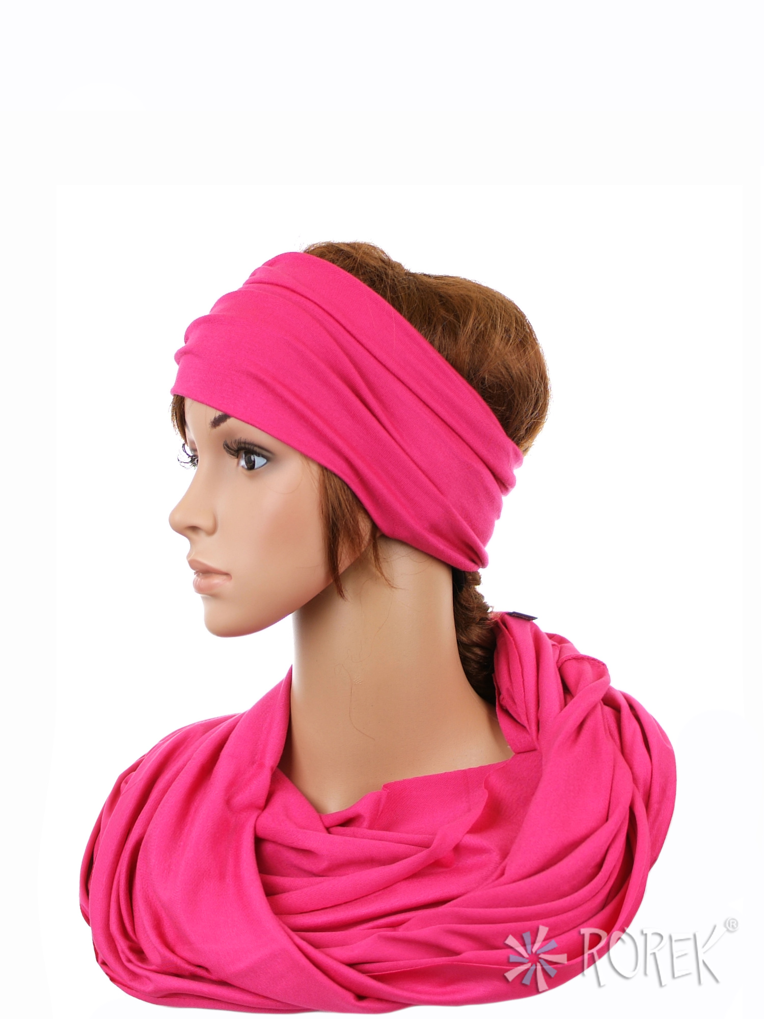 Komin damski wiązany w "ósemkę" w komplecie z szeroką, podwójnie szytą opaską ze ściągaczem - komplet wykonany z delikatnego i bardzo miłego w dotyku materiału 100 % bawełnianego, a dzięki niewielkiej ilości streczu, świetnie się poddaje.