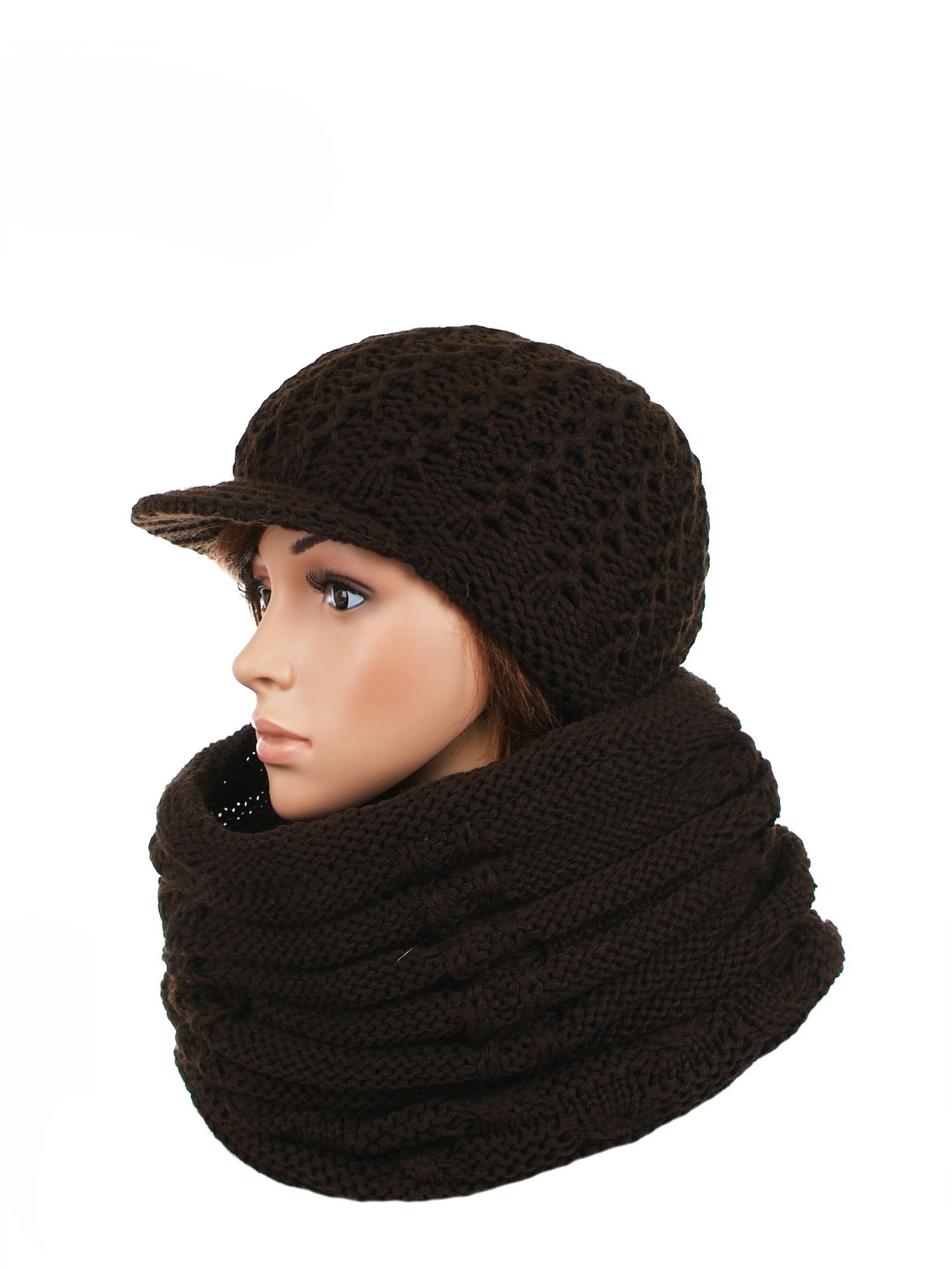 1) Damska czapka zimowa z daszkiem, szyta podwójnie.