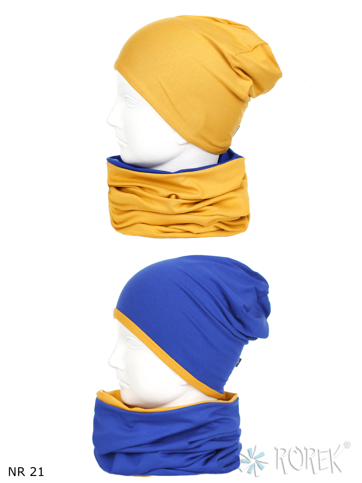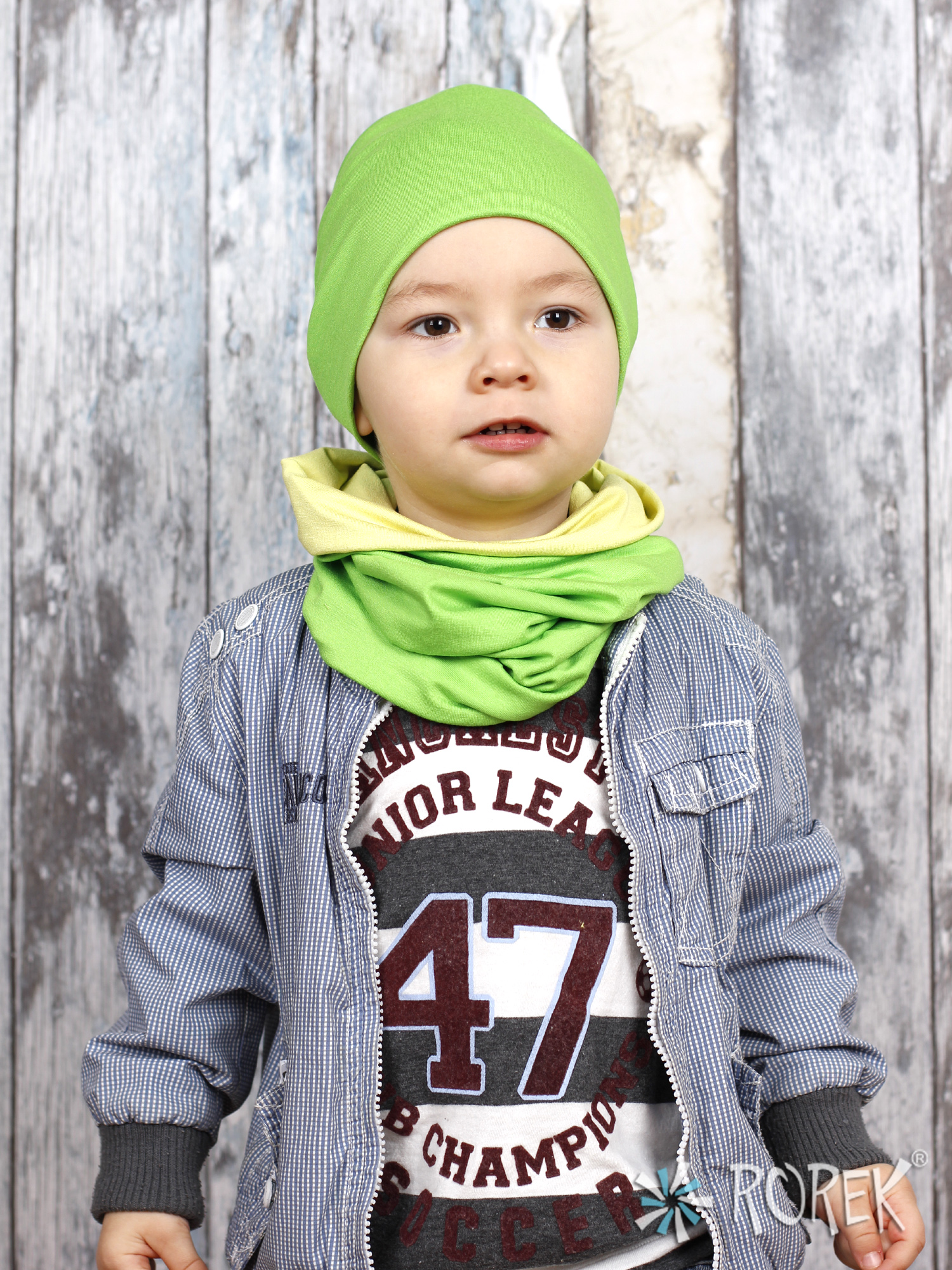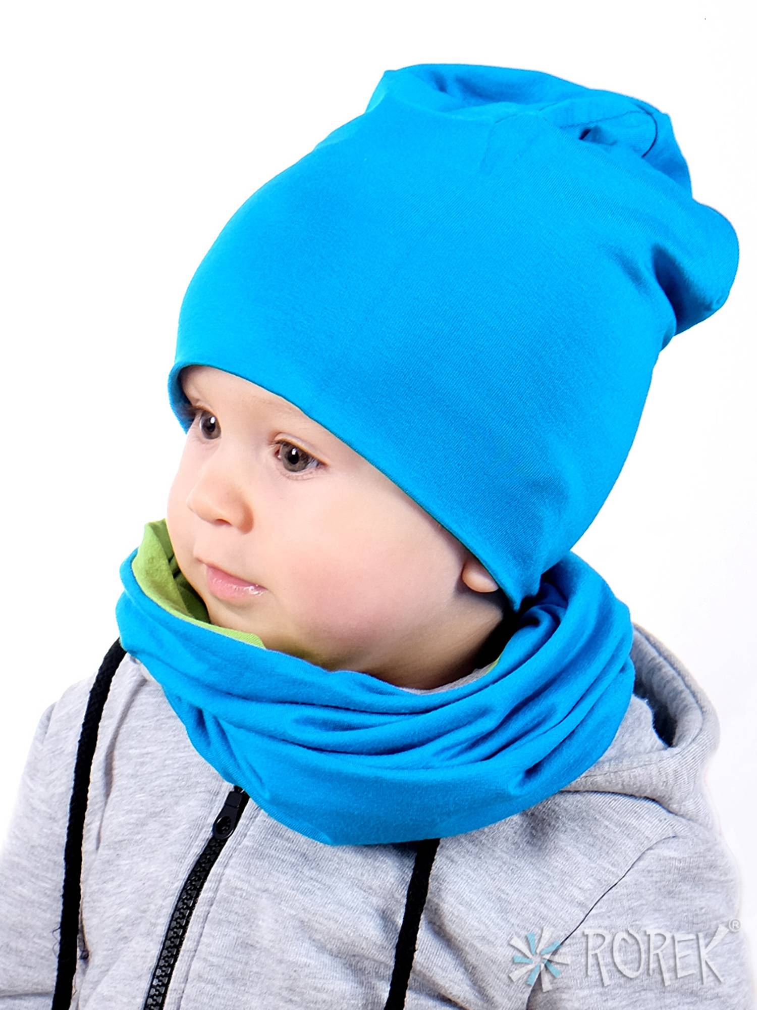 Komplet dziecięcy czapka krasnal + komin tuba ( zakładany na raz przez głowę) , dwustronny, dzięki czemu można go nosić na 4 różne sposoby. Komplecik wykonany z bardzo miłego i delikatnego w dotyku materiału bawełnianego, idealnego na wiosenno - jesienne dni. Czapka z kominem dostępna jest w różnych kombinacjach kolorystycznych.