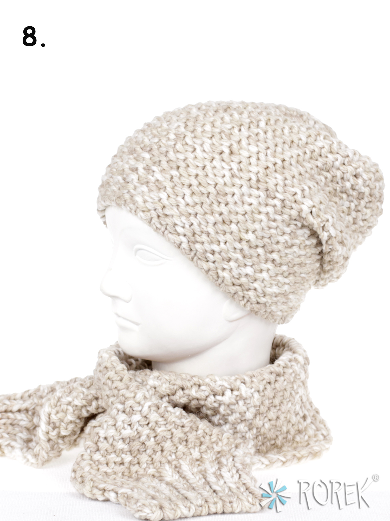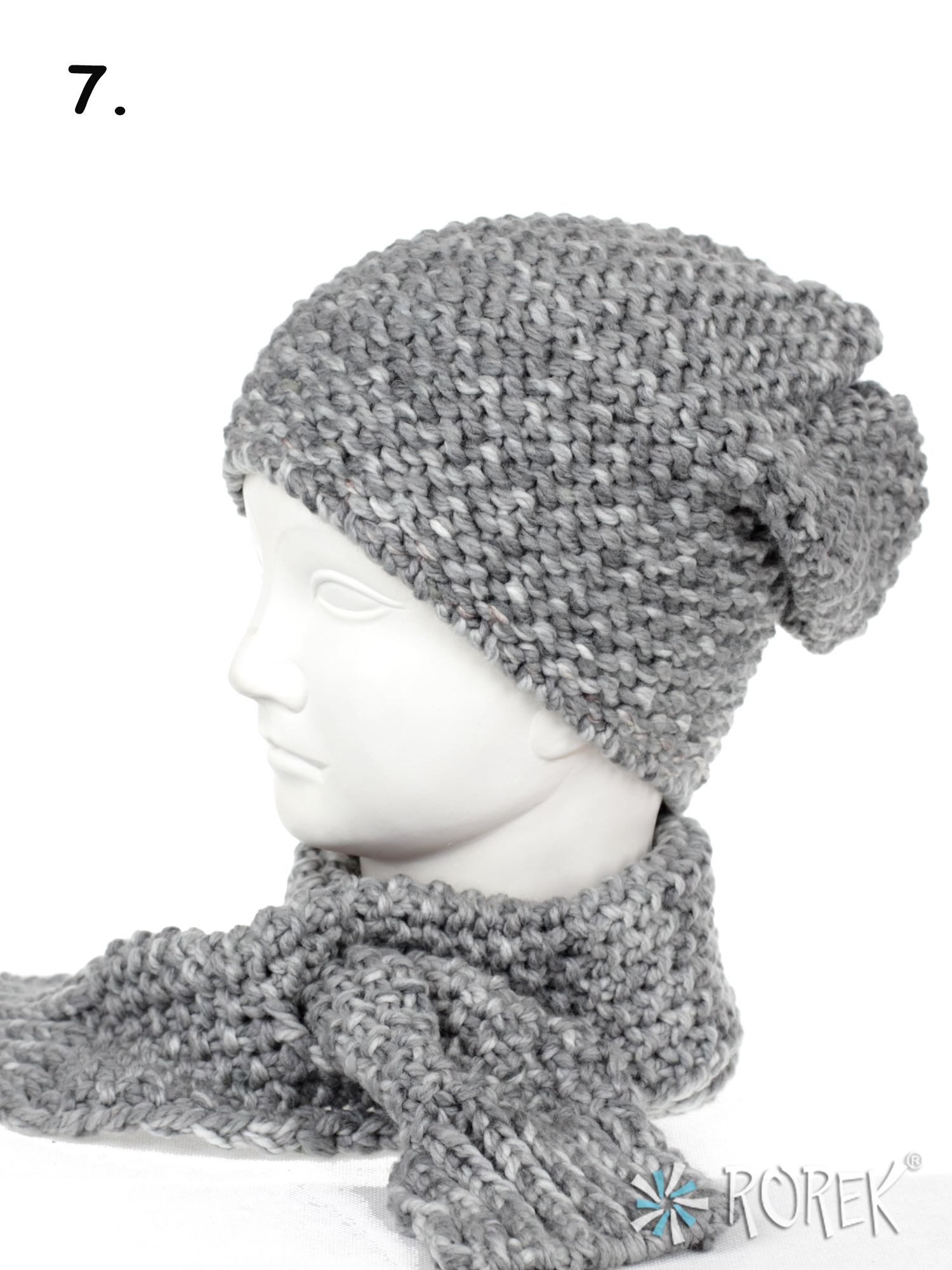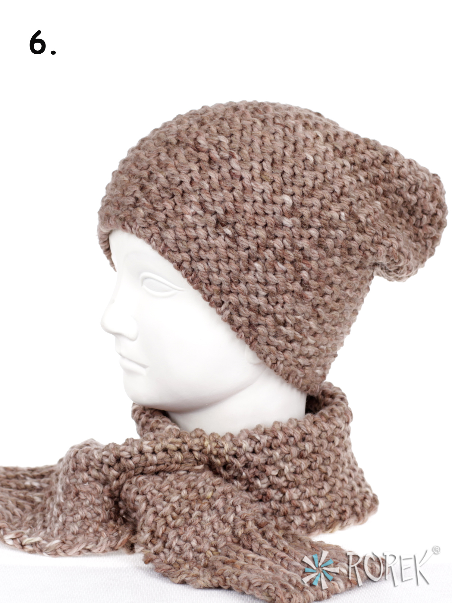 2) Klasyczny szalik wiązany za pomocą szlufki ( jak na zdjęciu) lub w tradycyjny sposób, również grubo pleciony, idealnie wygląda w komplecie z czapką.