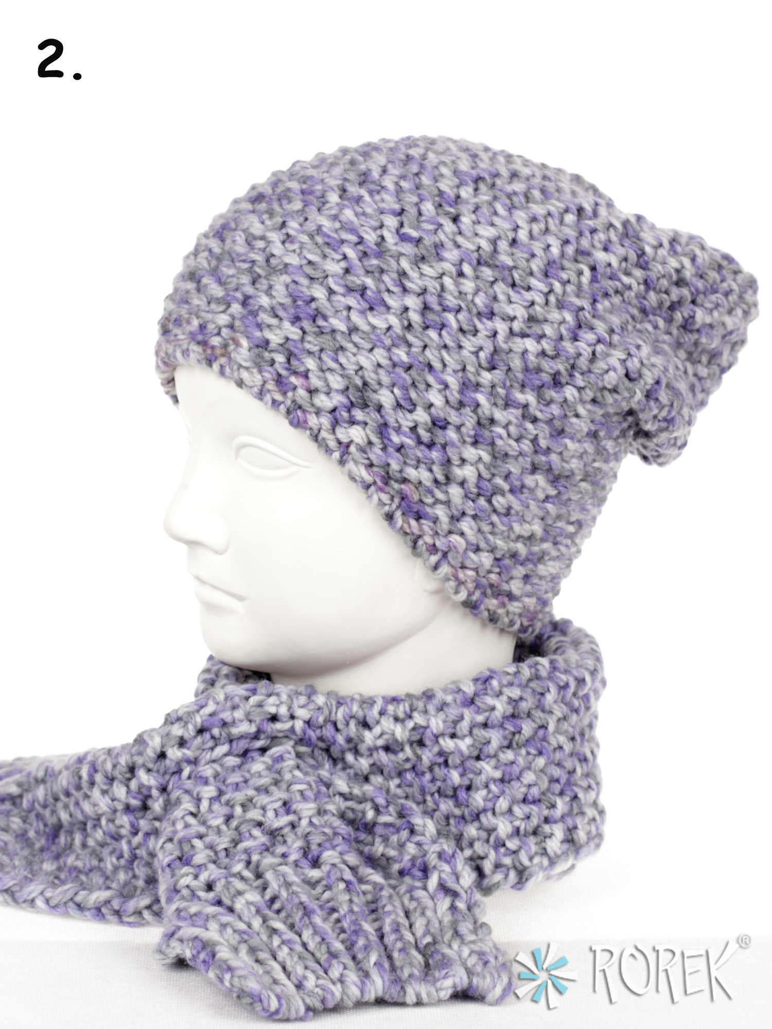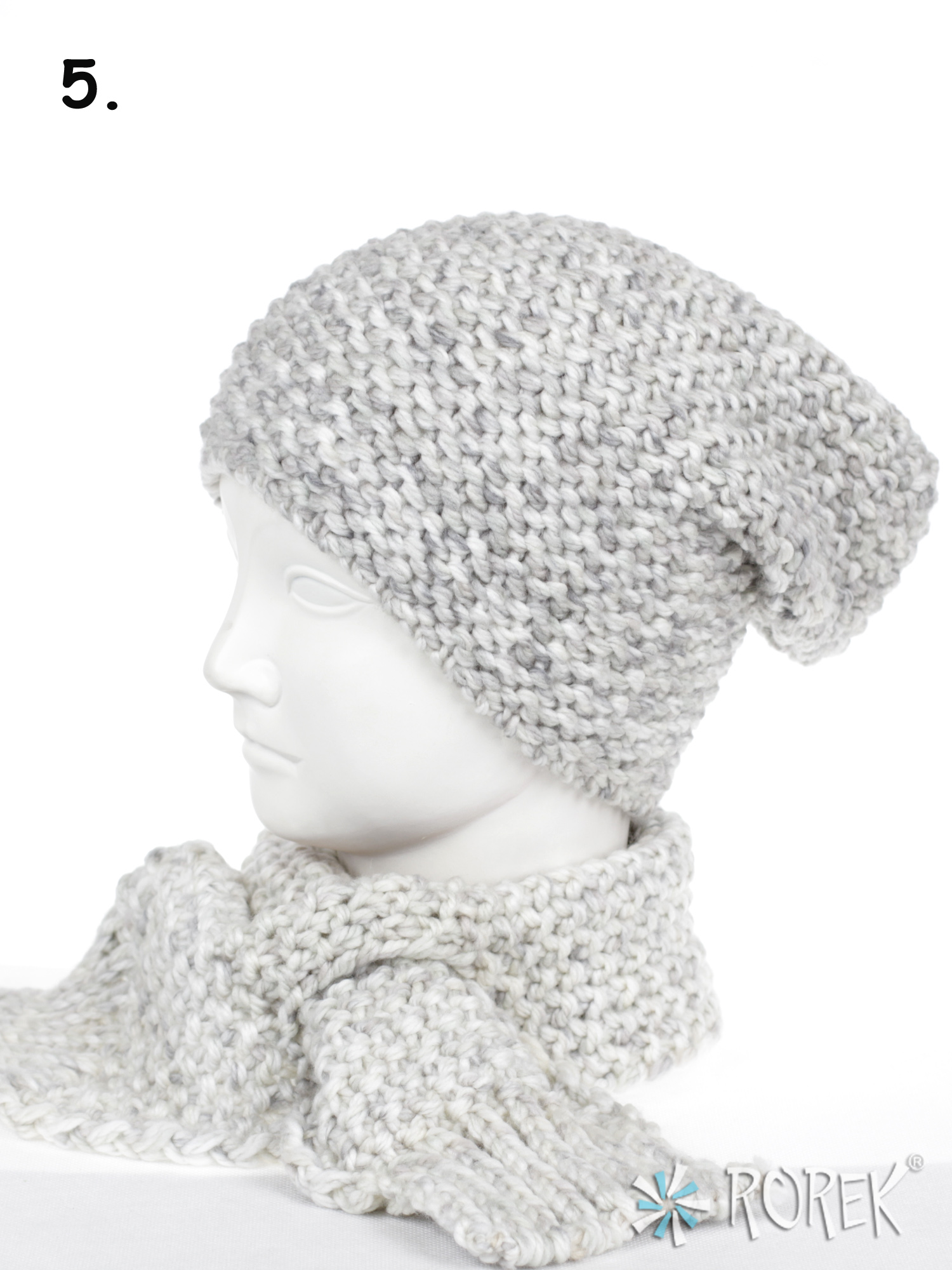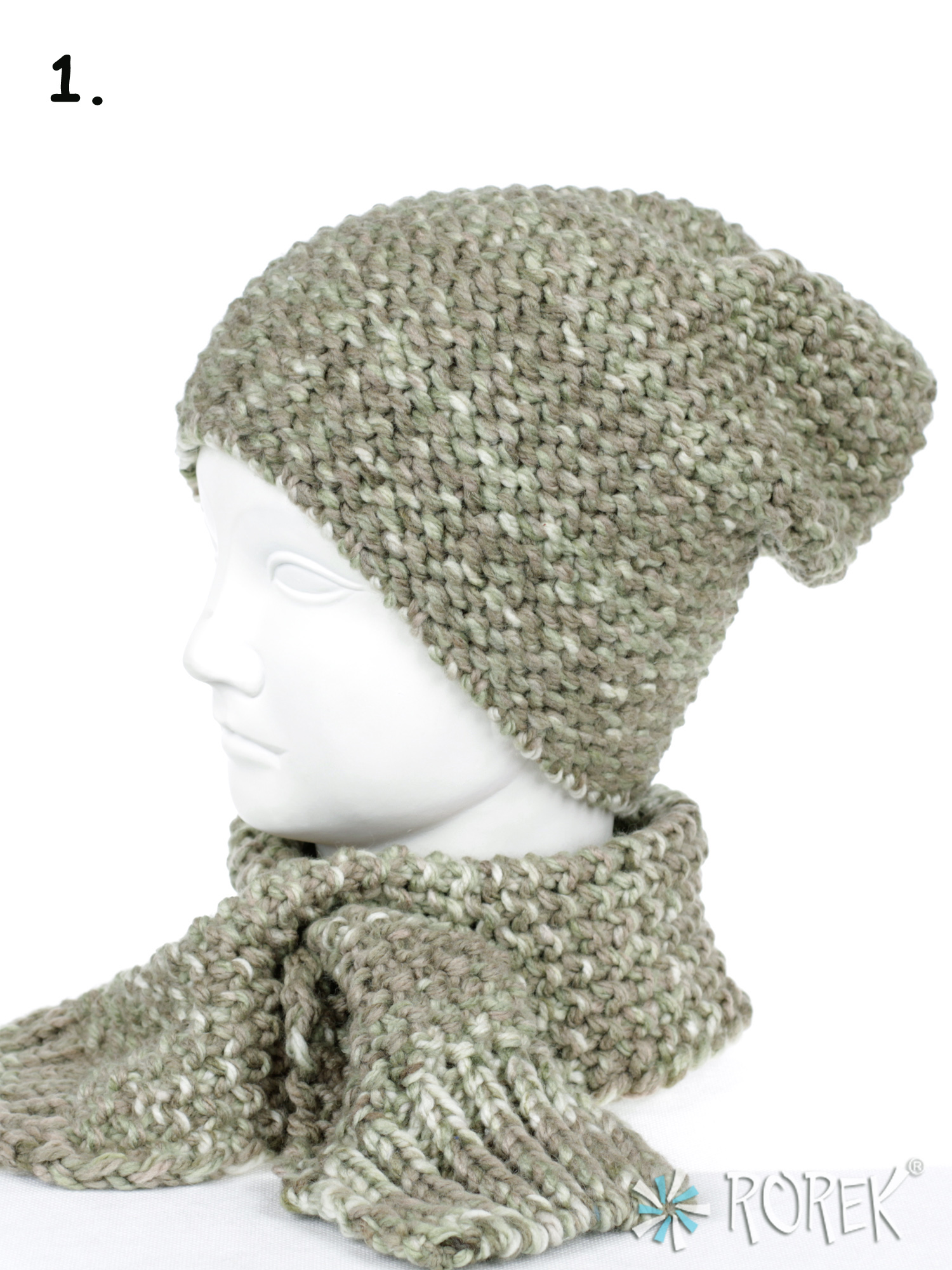 2) Klasyczny szalik wiązany za pomocą szlufki ( jak na zdjęciu) lub w tradycyjny sposób, również grubo pleciony, idealnie wygląda w komplecie z czapką.