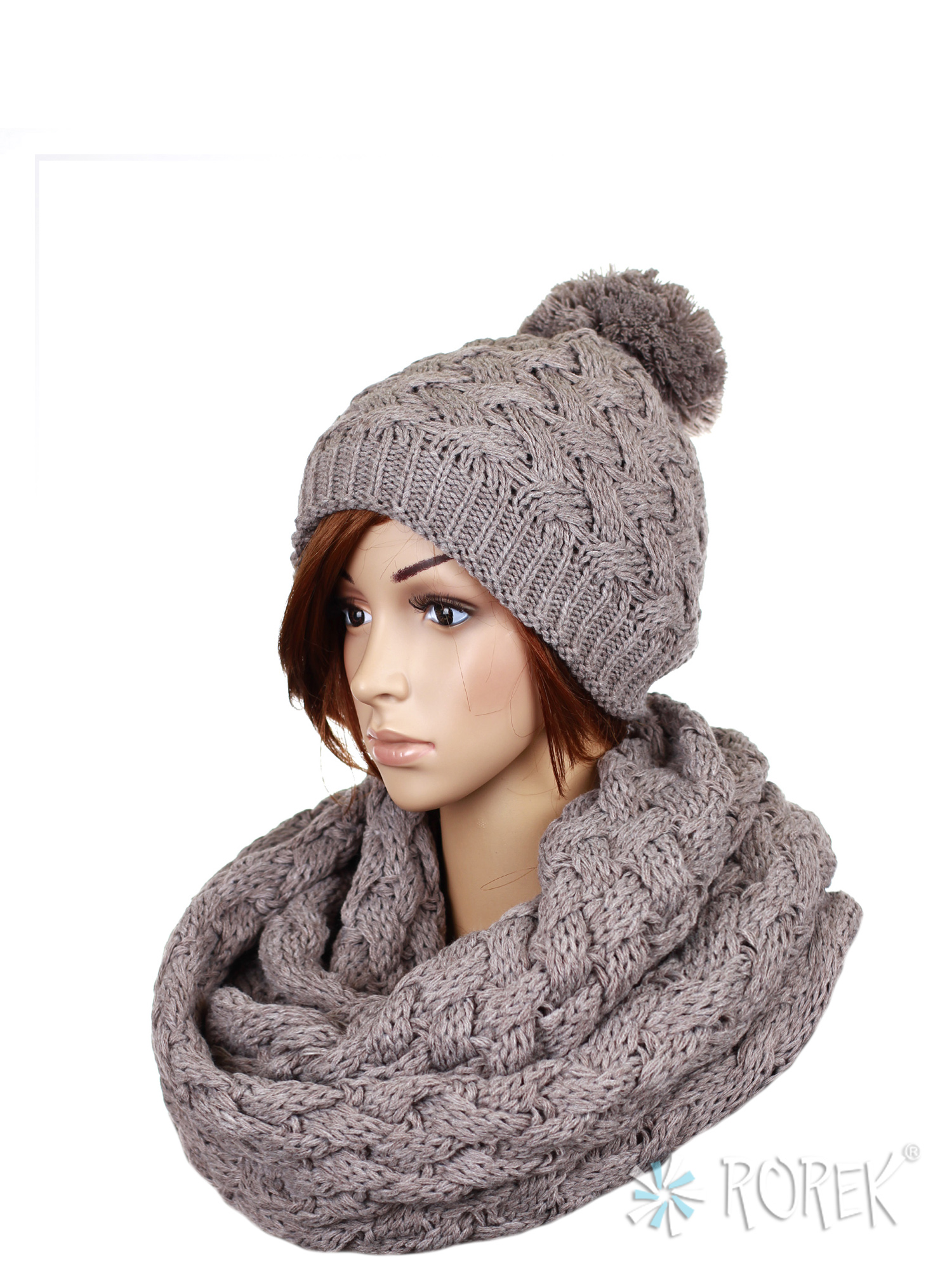 1) Czapka zimowa damska z pomponem, szyta podwójnie.