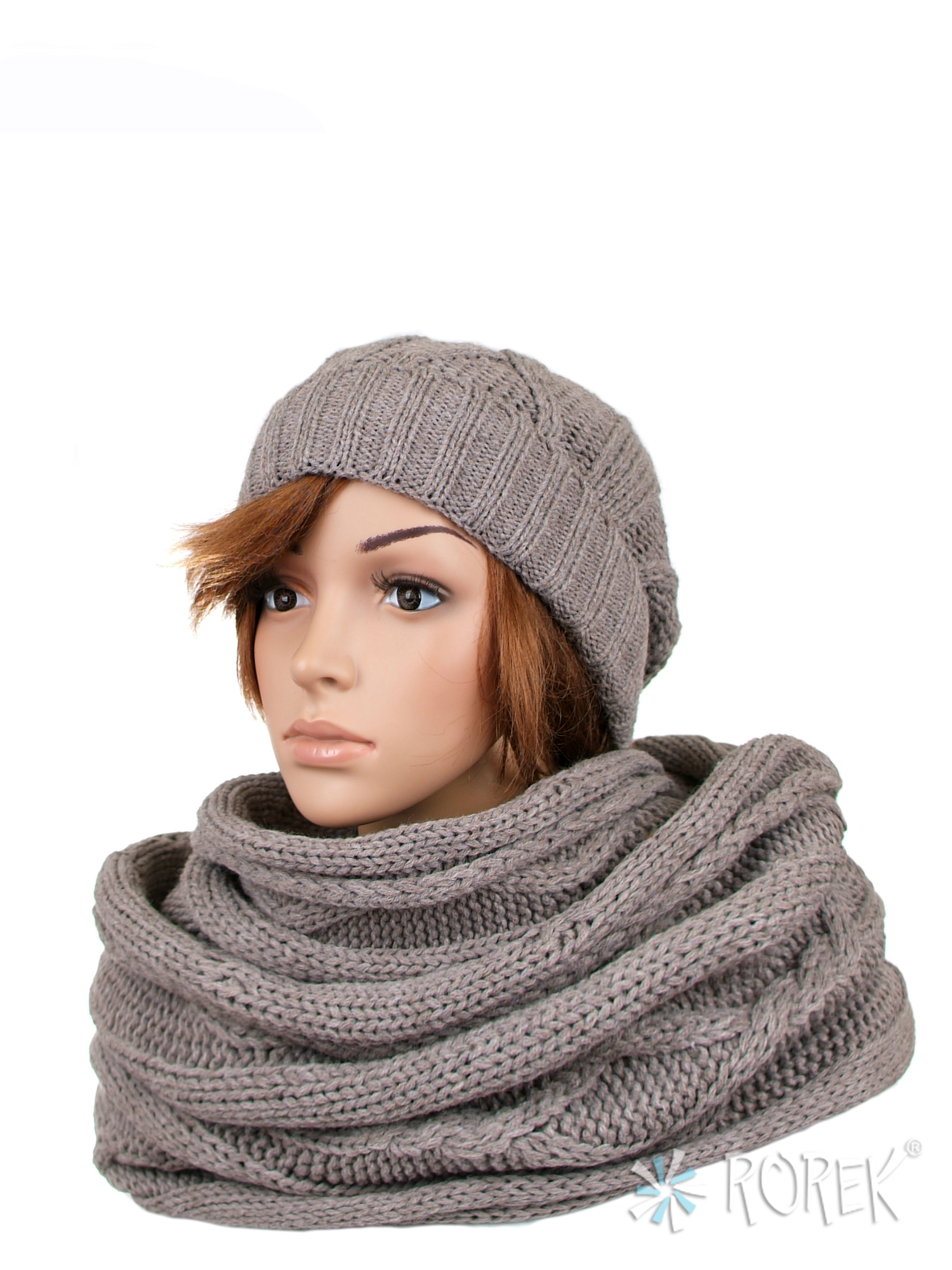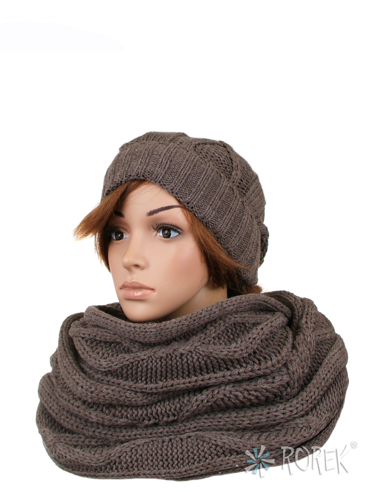 2) Komin damski wiązany na dwa razy wokół szyi, stanowiący idealny komplet z czapką o splocie rombów. Komin ładnie się poddaje, dzięki czemu jest łatwy w zakładaniu.